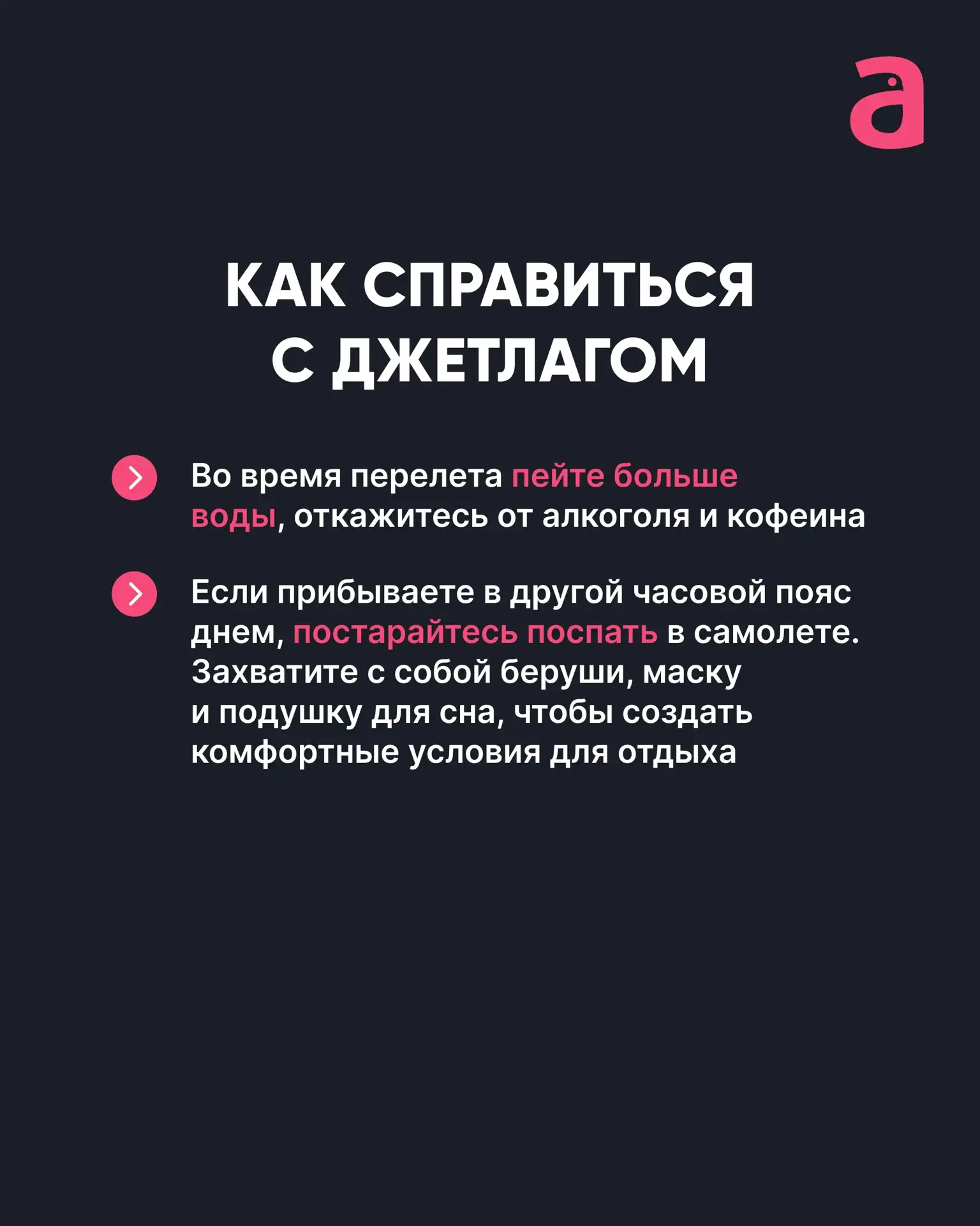 *️⃣ В карточках разбираемся, как вовремя распознать джетлаг и быстро справиться с этим состоянием.