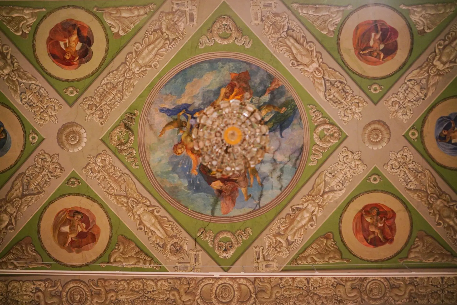 На рисунке художника-реставратора Павла Спасского из #КоллекцияМУАР — фрагмент росписи плафона Александринского дворца в усадьбе Нескучное🌺