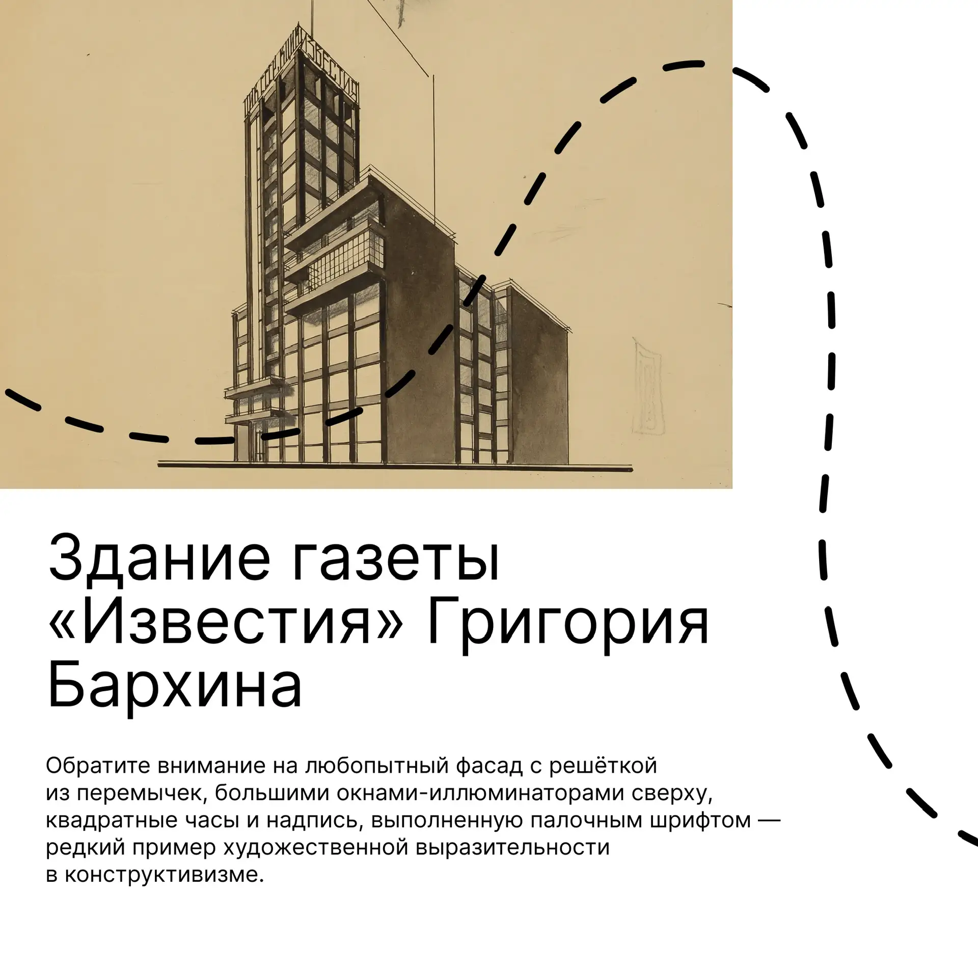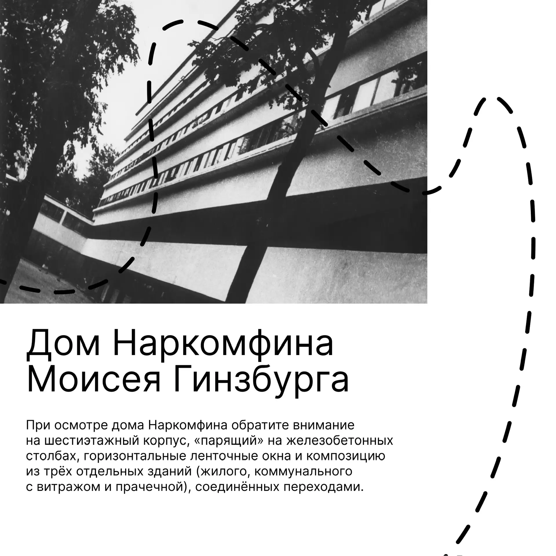 К закрытию выставки «Конструктивизм. Траектория метода» подготовили пешеходный маршрут для семейной прогулки. В путеводитель вошли памятники конструктивизма и другие выдающиеся здания эпохи авангарда, которые можно увидеть за одну прогулку по Москве.