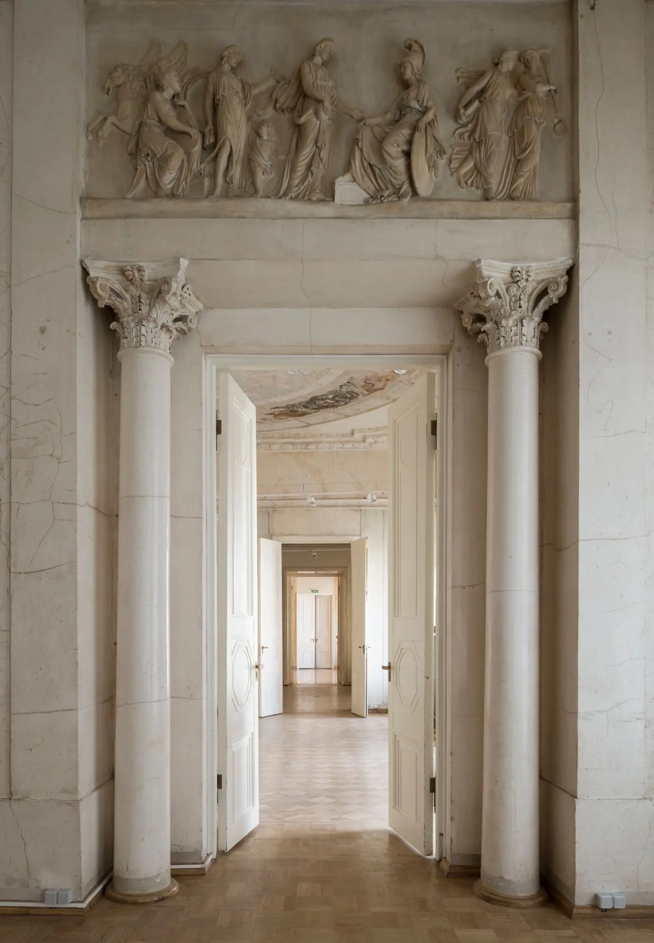К сожалению, его идея не была принята. В итоге стены, украшенные ордерными элементами, оставили белыми. В 1994-1999 годы Андреевский и Александровский залы восстановили в прежних формах, воссоздав утраченные элементы декора по сохранившимся эскизам и фотографиям. В дальнейшем помещение использовали для заседания Государственного совета.