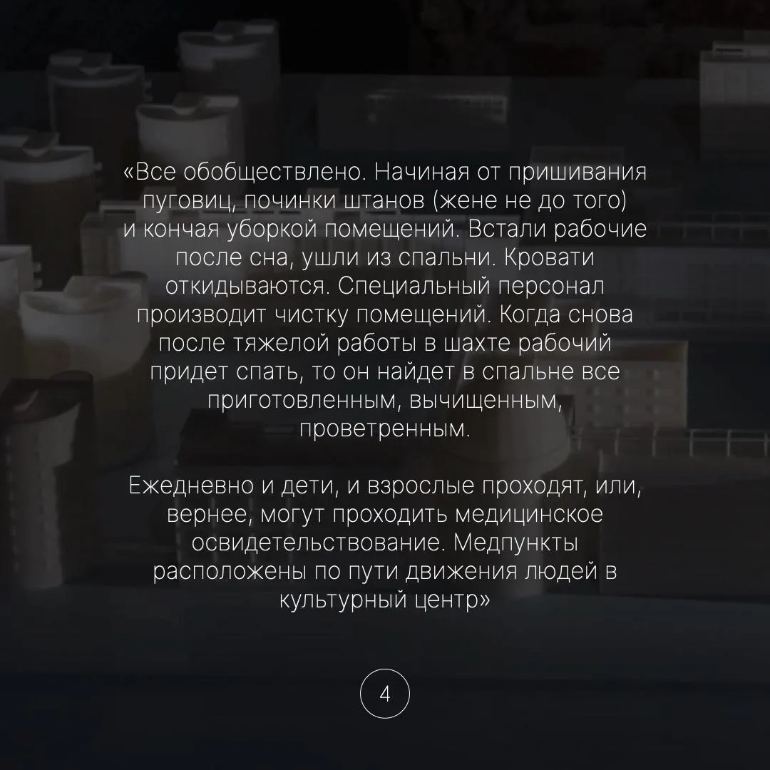 Собрали в карточках фрагменты текста, в котором архитектор сам описывает жизнь коммуны в Анжеро-Судженске!