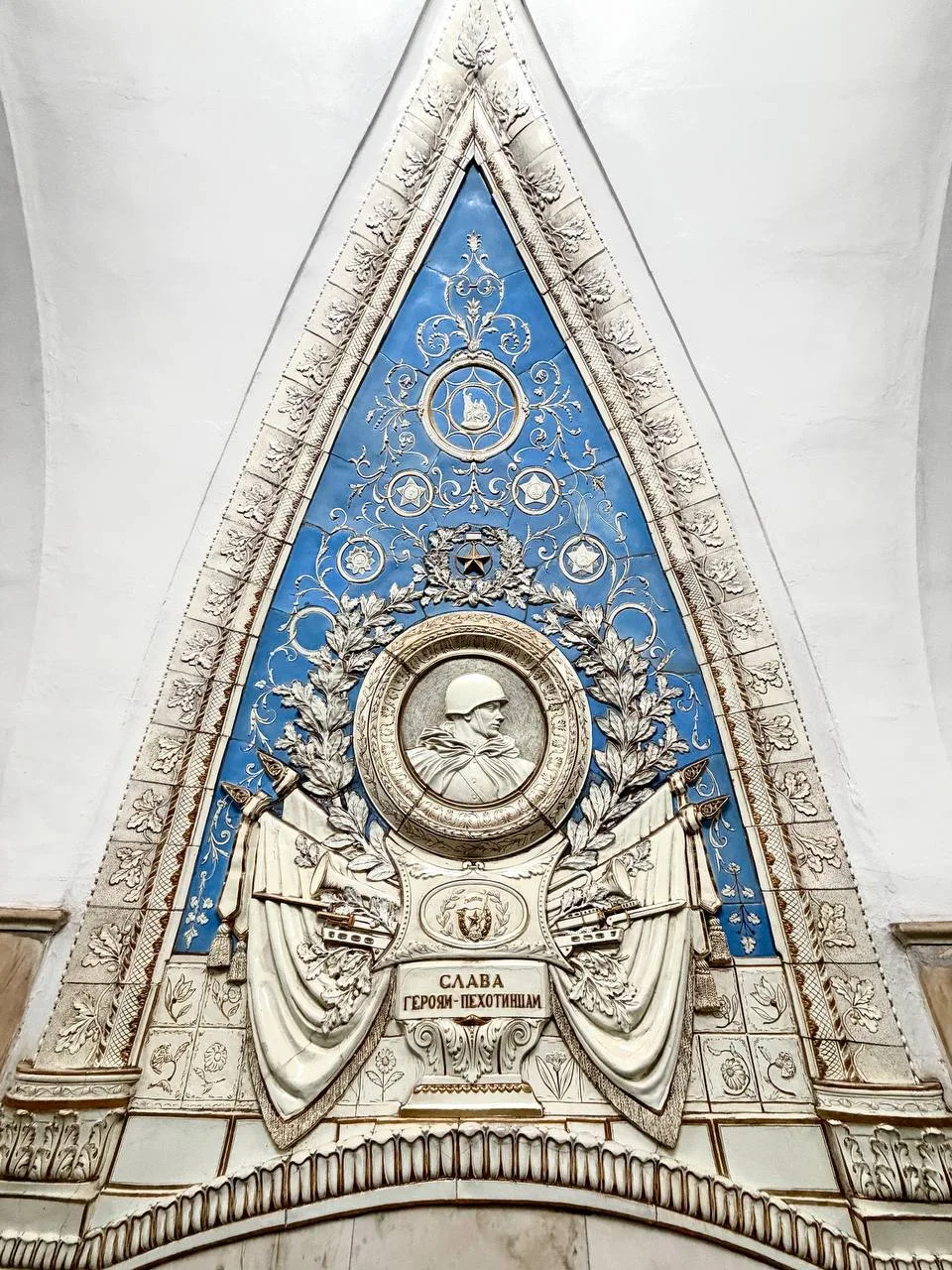 Панно на одном из пилонов станции «Таганская» Кольцевой линии Московского метрополитена, скульпторы Е.П. Блинова, П.М. Кожин, А.Г. Сотников, А.Д. Бржезицкая, З.С. Соколова, 1950 год