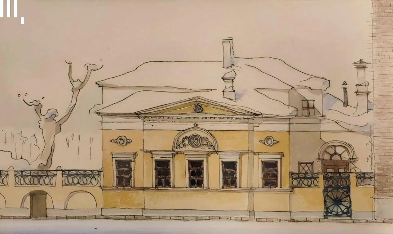 Дом в Мансуровском переулке на рисунке Георгия Крутикова (да-да, того самого автора знаменитого «Летающего города») 1940 года из #КоллекцияМУАР