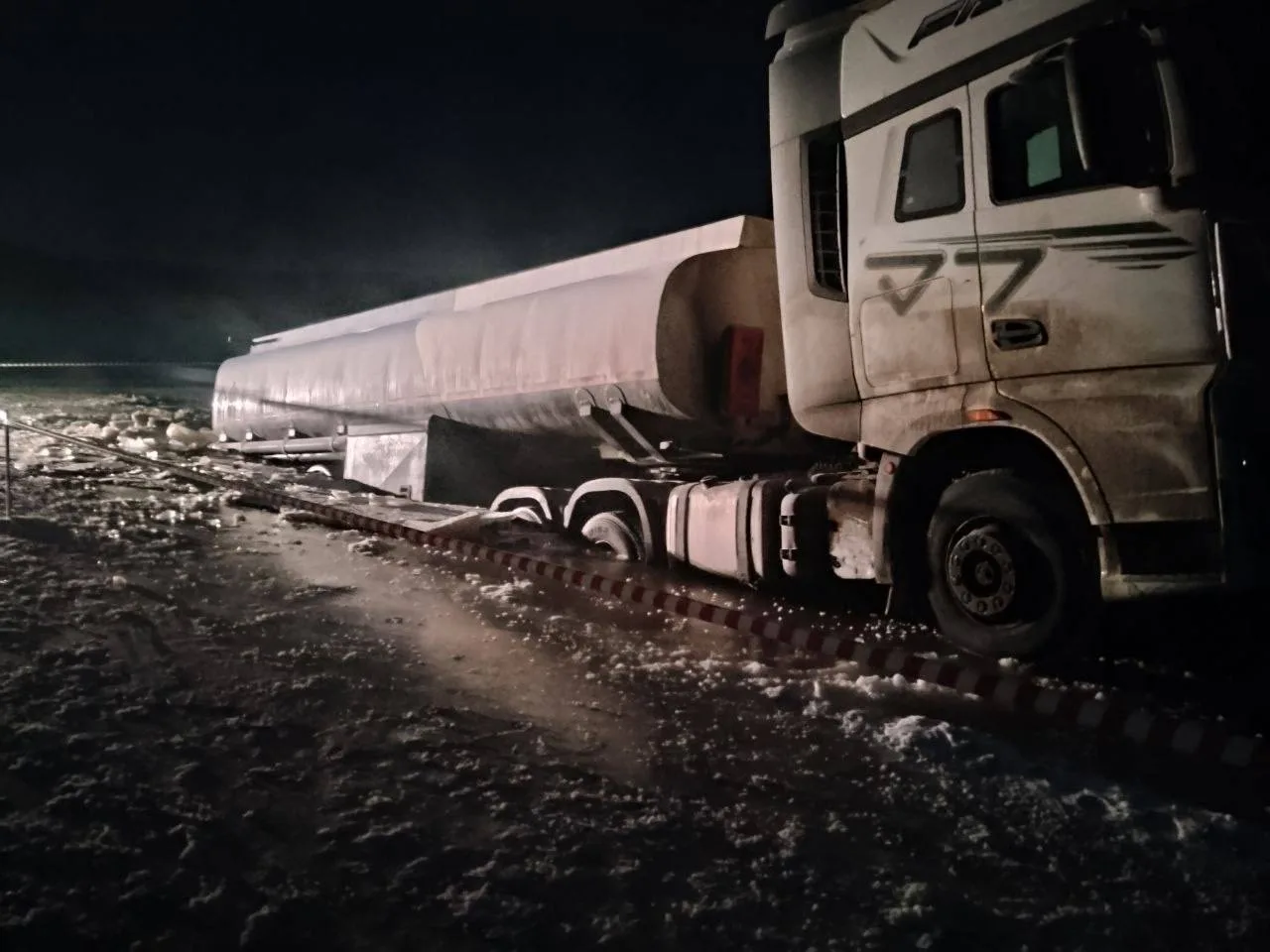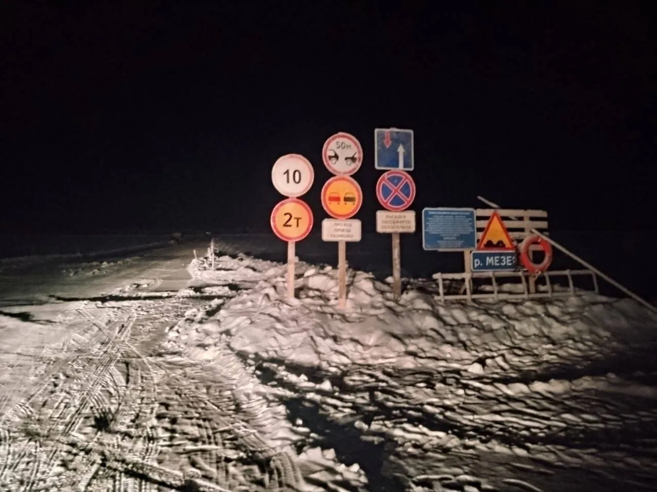 Бензовоз частично провалился под лед на переправе через Мезень у села Кимжа.