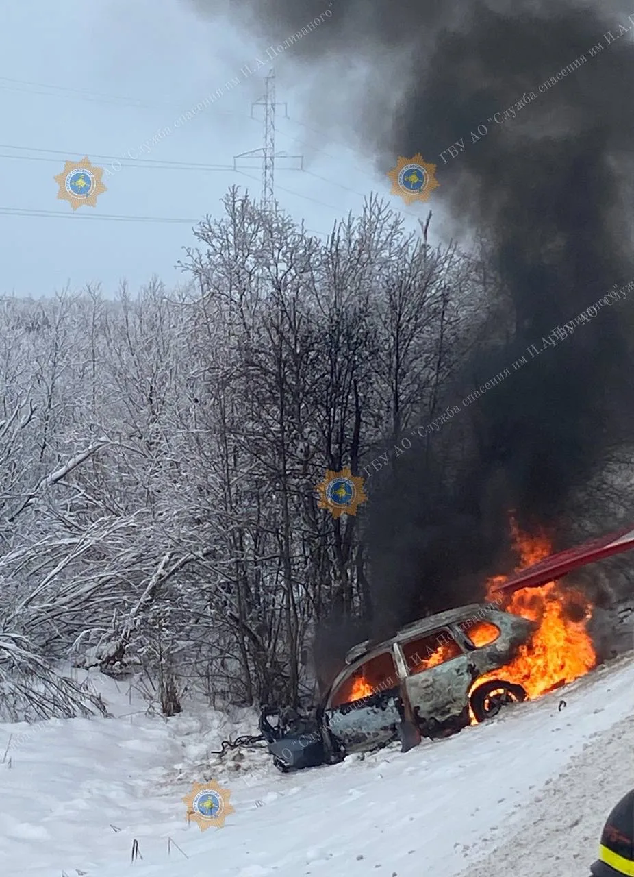 По предварительным данным, автомобиль Porsche, двигавшийся в сторону Архангельска, выехал на встречную полосу и столкнулся с автобусом. От удара иномарку выбросило в кювет, где она вспыхнула. Следом в автобус врезался Suzuki, ехавший в попутном направлении.