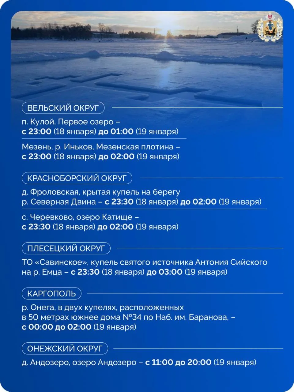 ⛪️ Где будут работать купели на Крещение в Поморье?