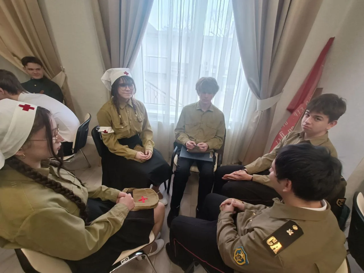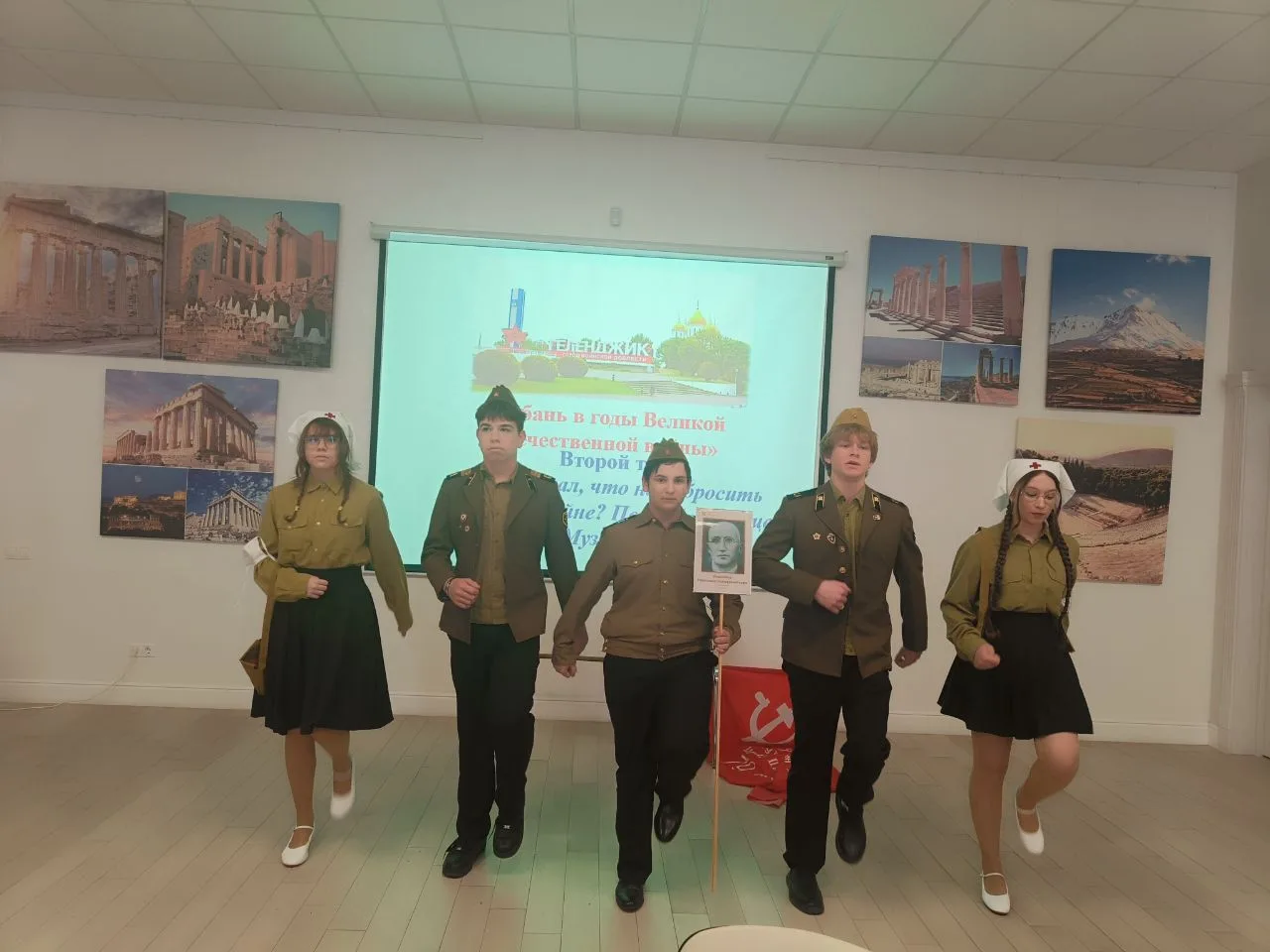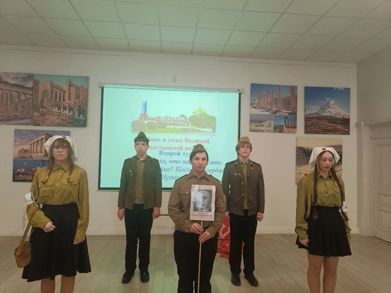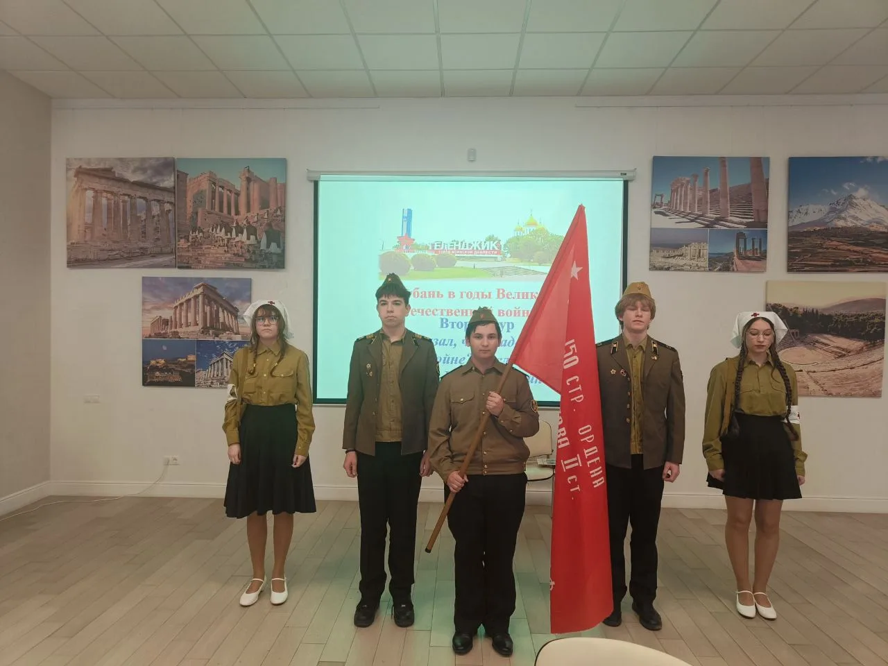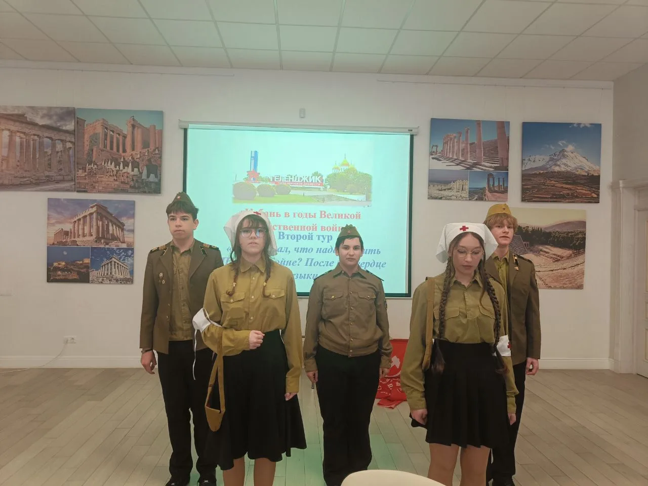 Ребята прошли три тура: приветствие команд, ответы на вопросы о Кубани в годы ВОв и инсценировка военной песни. Все испытания команда прошла достойно!