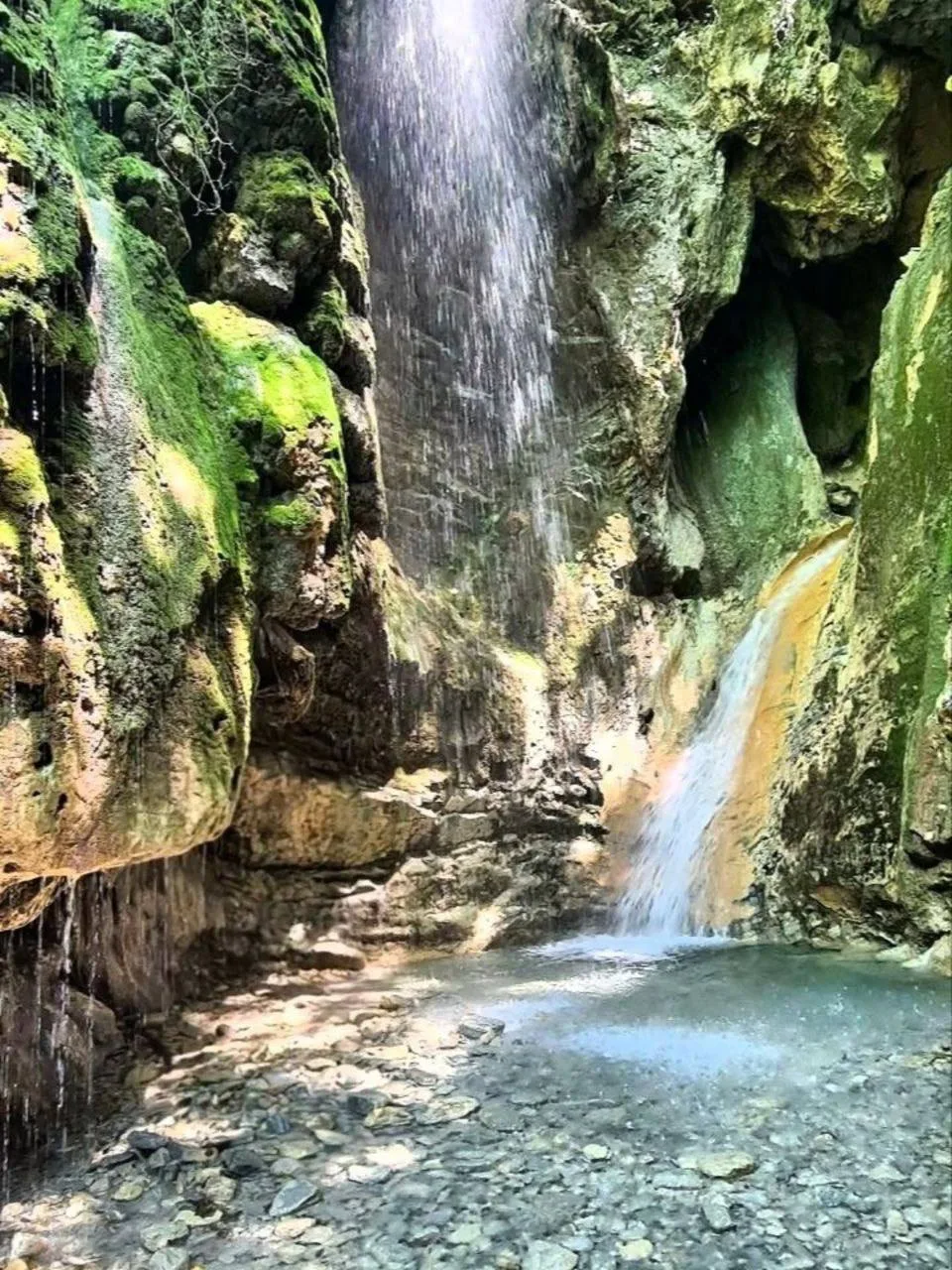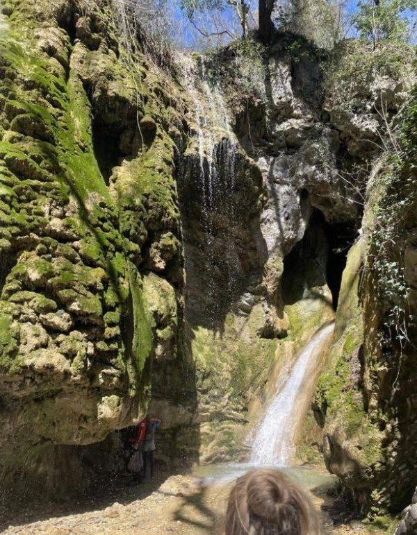 Если подняться наверх, там вас ждёт второй водопад и загадочный грот в скале с потрясающим видом на окрестности.