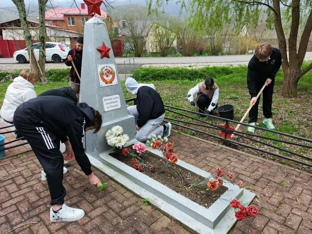 🇷🇺 Проведение уходных работ — важная часть патриотического и трудового воспитания и добрая традиция школы, а также дань уважения погибшим от молодого поколения.
