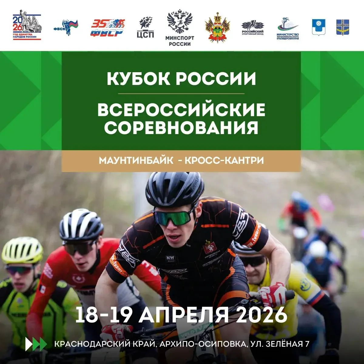 18-19 апреля в Краснодарском крае, в Архипо-Осиповке состоится Кубок России и Всероссийские соревнования в олимпийской дисциплине «кросс-кантри».