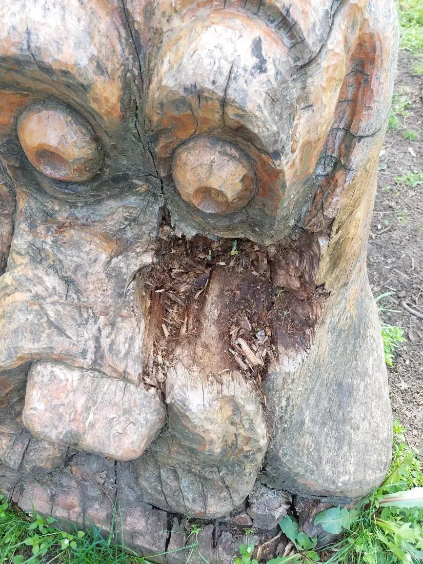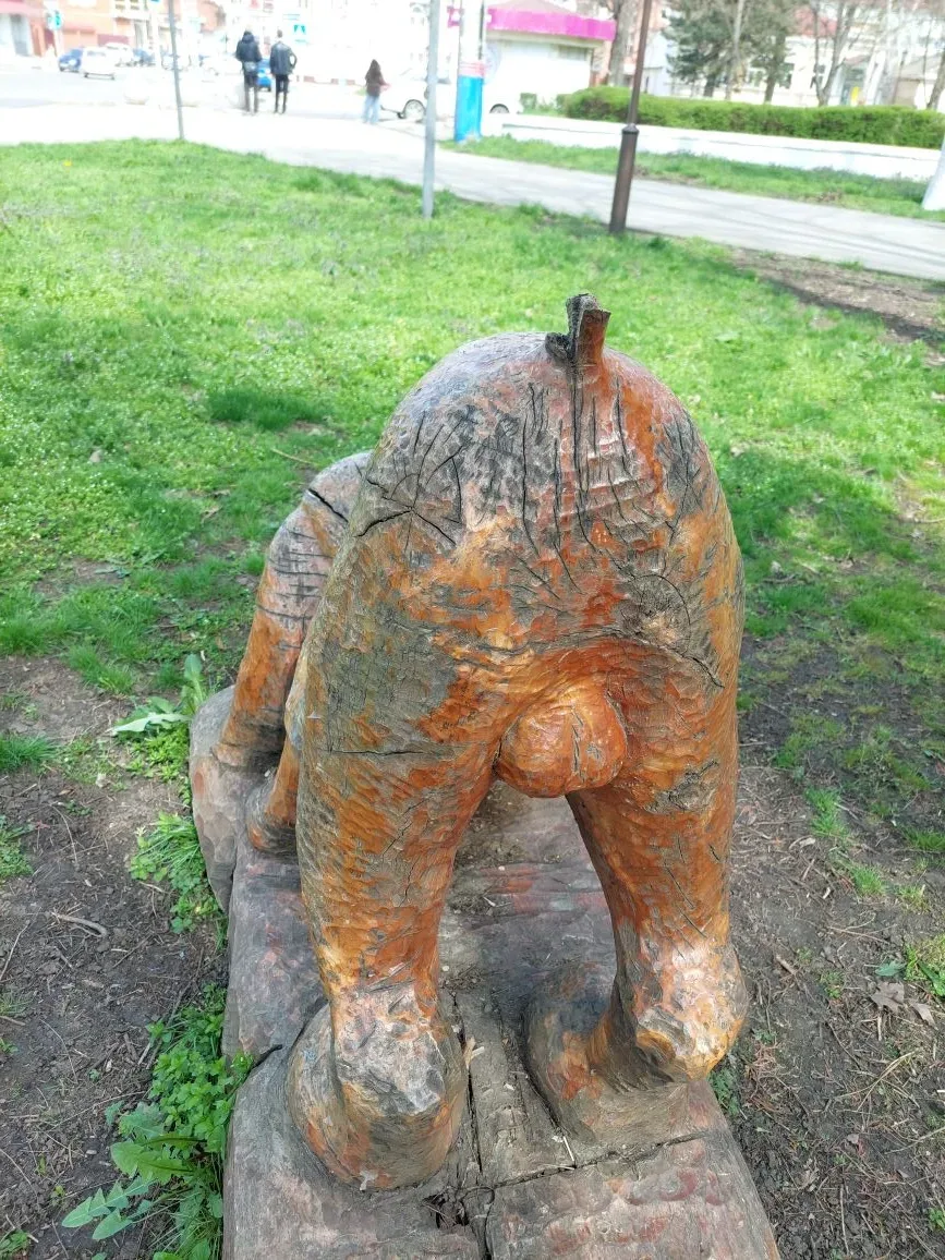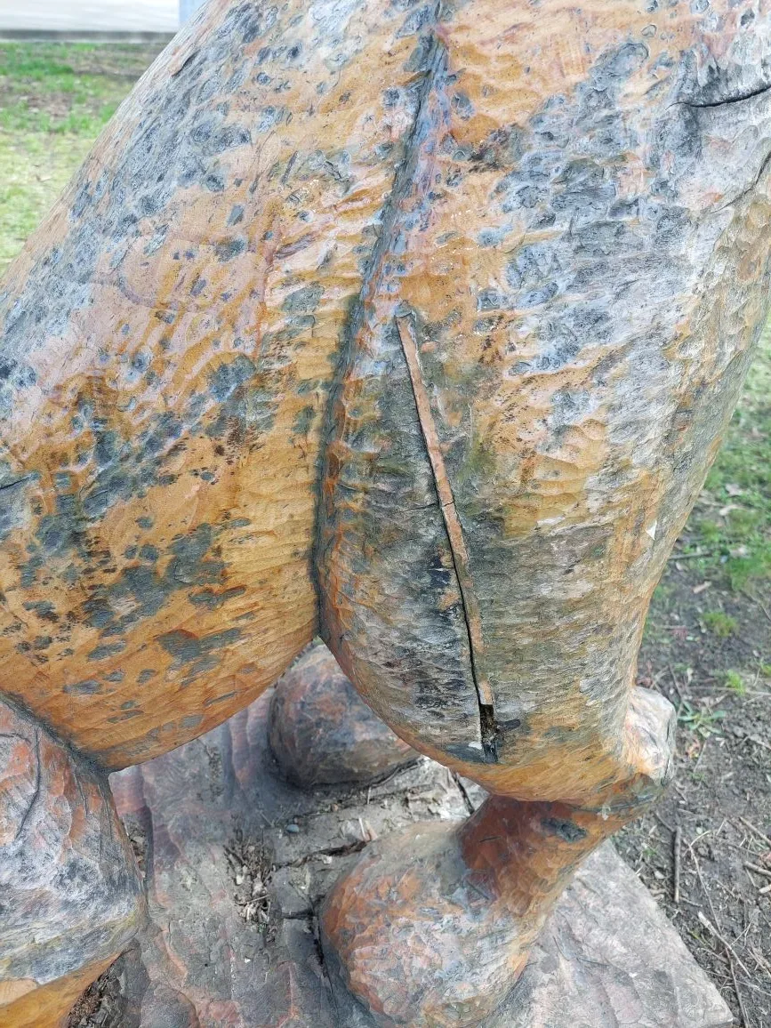 Дружок в парке "Победы" давно потерял свой хвост. Вдобавок ко всему деревянная фигурка начала трескаться.