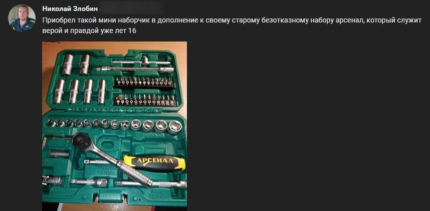 Я около 10 лет отработал в автосервисе , первые лет 5 переломал очень много китайских наборов. Потом мне начальник купил арсенал и всё, ничего не сломал. И пару недель назад заезжал в автосервис, до сих пор тем набором разботают