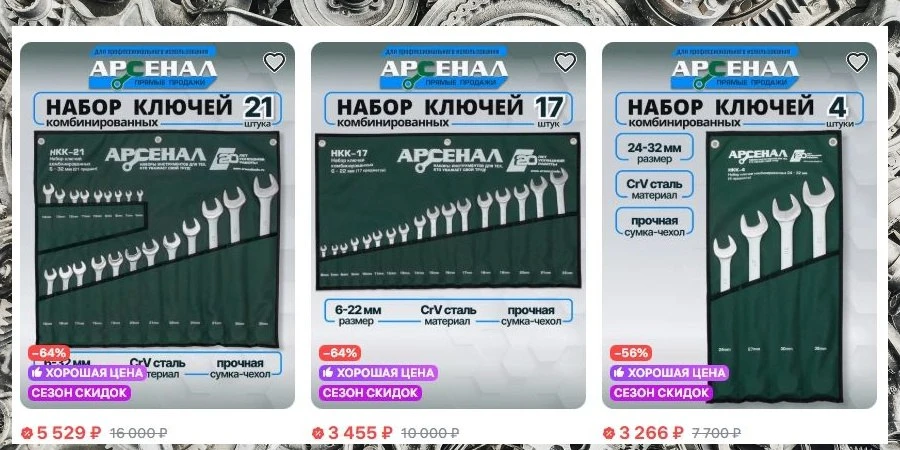 Ключи комбинированные Арсенал заказать по отличной цене можно здесь: