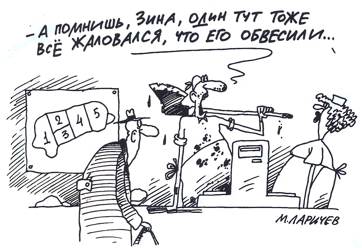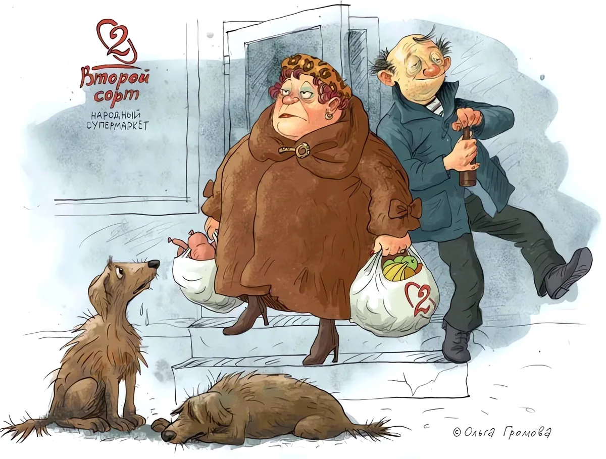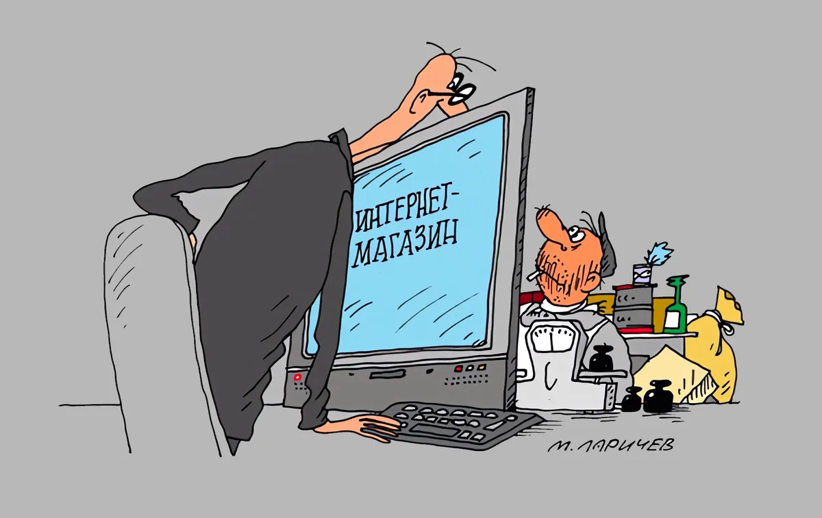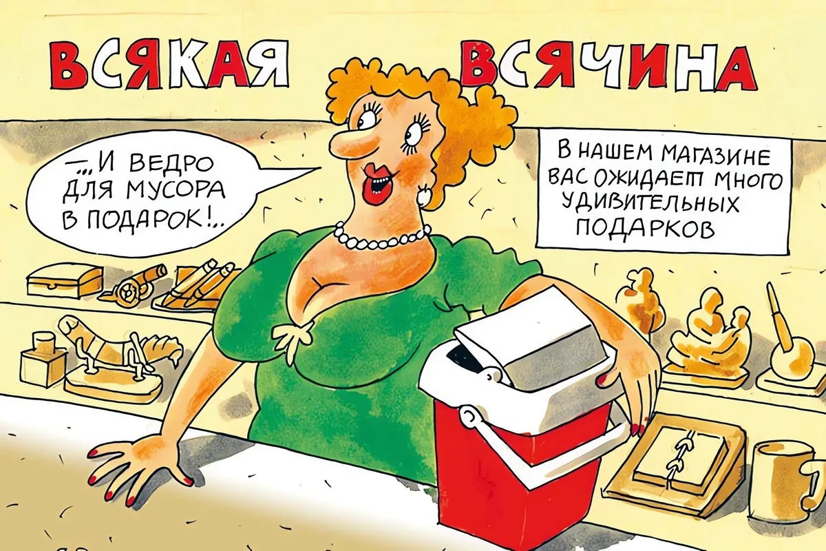 Одна из самых популярных тем в карикатуре касается торговли, без которой невозможно представить нашу жизнь. Мы практически каждый день отправляемся в магазин, заказываем доставку продуктов домой или «шопимся» на маркетплейсах. Но российский магазин — это не просто точка, где продают и покупают. Ещё со времён Союза это настоящее место силы, доверчивости и обмана, удовлетворения и разочарований. Сегодня я предлагаю вам погрузиться в волнующий мир товарно-денежных отношений с помощью остроумных и очень жизненных шуток известных отечественных карикатуристов. Сергея Корсуна, Евгения Крана, Николая Крутикова, Андрея Саенко, Владимира Иванова, Андрея Попова, Игоря Елистратова, Михаила Ларичева, Игоря Кийко, Валентина Дружинина и Ольги Громовой.