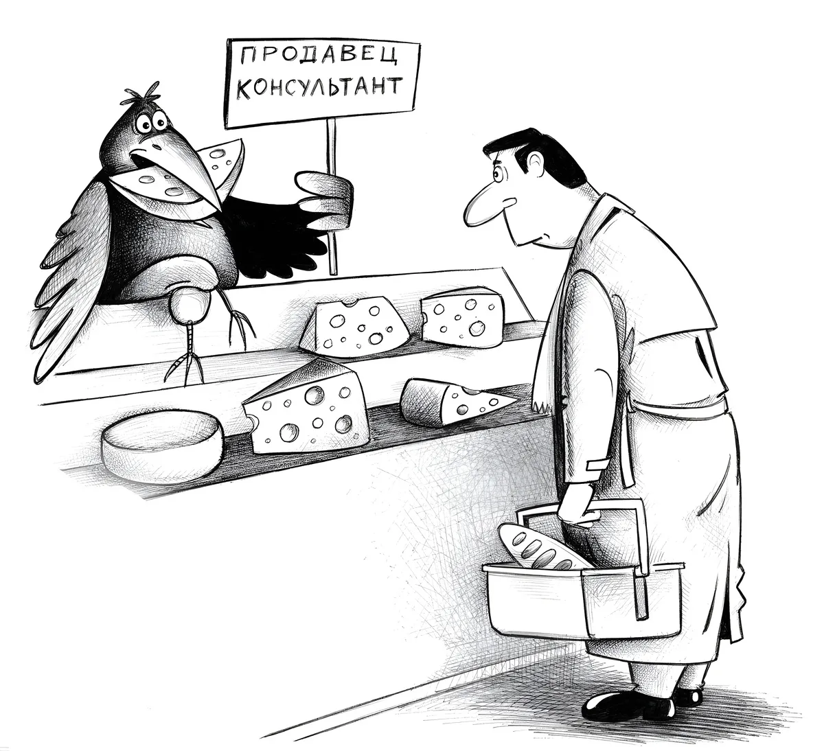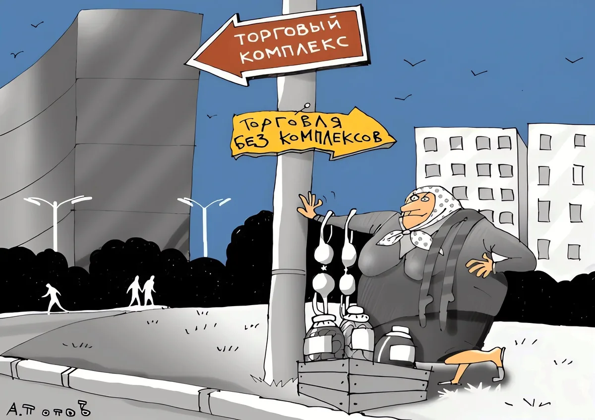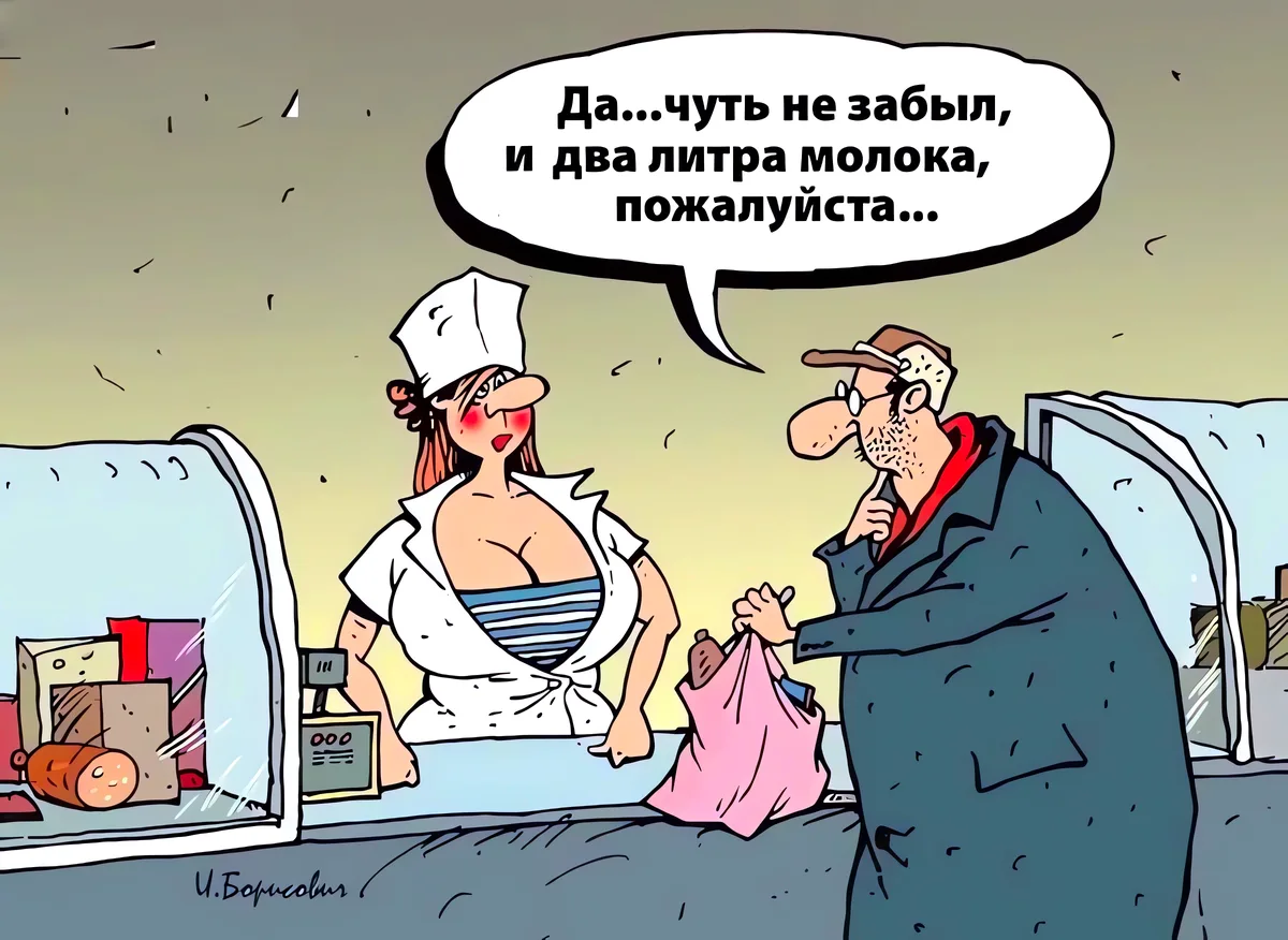 Одна из самых популярных тем в карикатуре касается торговли, без которой невозможно представить нашу жизнь. Мы практически каждый день отправляемся в магазин, заказываем доставку продуктов домой или «шопимся» на маркетплейсах. Но российский магазин — это не просто точка, где продают и покупают. Ещё со времён Союза это настоящее место силы, доверчивости и обмана, удовлетворения и разочарований. Сегодня я предлагаю вам погрузиться в волнующий мир товарно-денежных отношений с помощью остроумных и очень жизненных шуток известных отечественных карикатуристов. Сергея Корсуна, Евгения Крана, Николая Крутикова, Андрея Саенко, Владимира Иванова, Андрея Попова, Игоря Елистратова, Михаила Ларичева, Игоря Кийко, Валентина Дружинина и Ольги Громовой.
