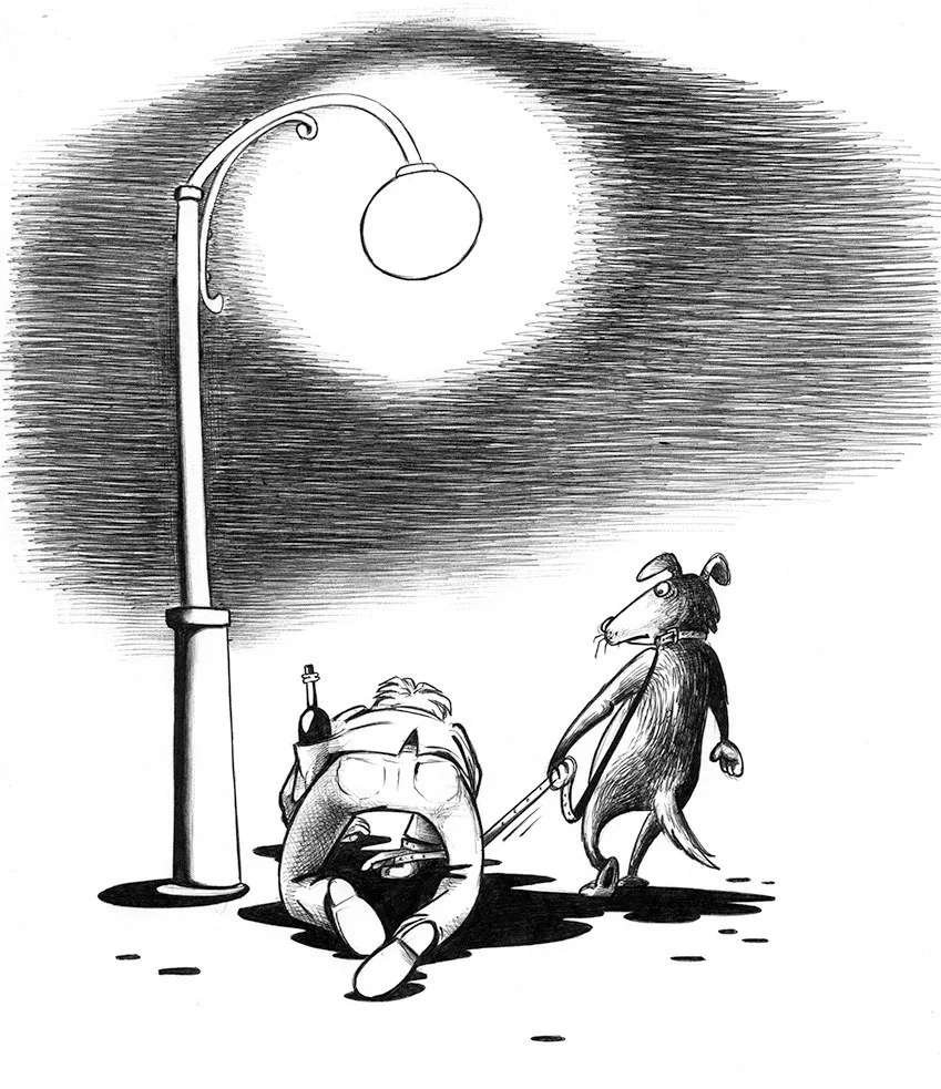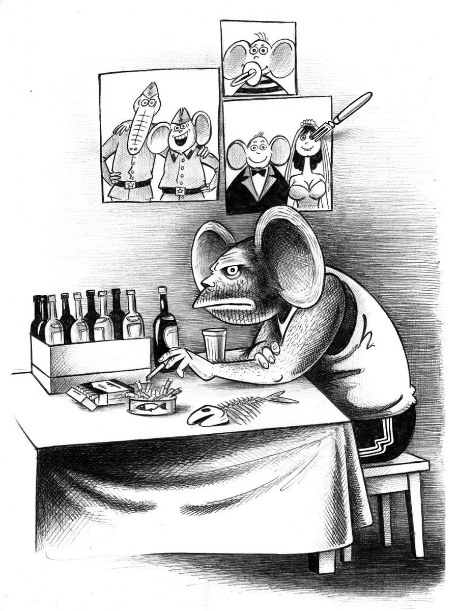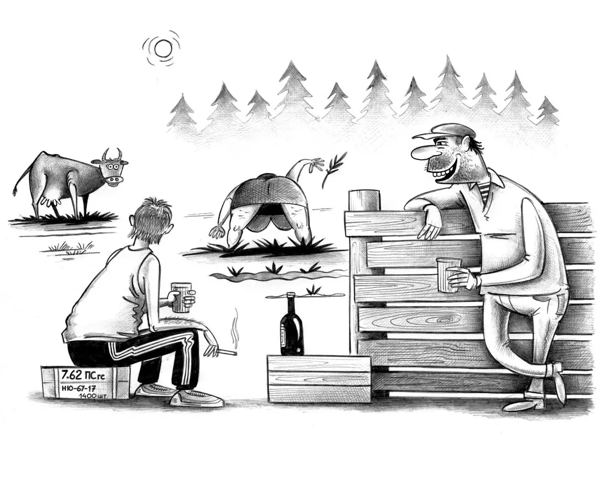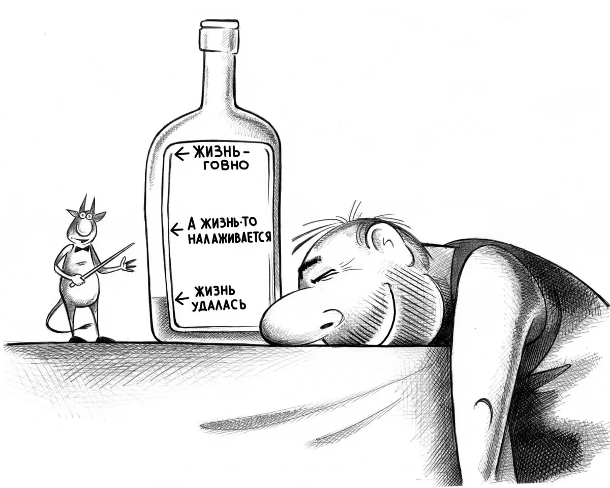 Пьяница как персонаж живёт в весёлом жанре дольше, чем любой политик или кинозвезда. Он не нуждается в представлении и почти всегда вызывает смех своим появлением. Особенно в отечественной карикатуре, где образ выпившего мужичка является культурным маркером и своеобразным зеркалом русского менталитета. Этот доморощенный философ, «залив зенки», начинает рассуждать о глобальных проблемах современности и требует к себе уважения.