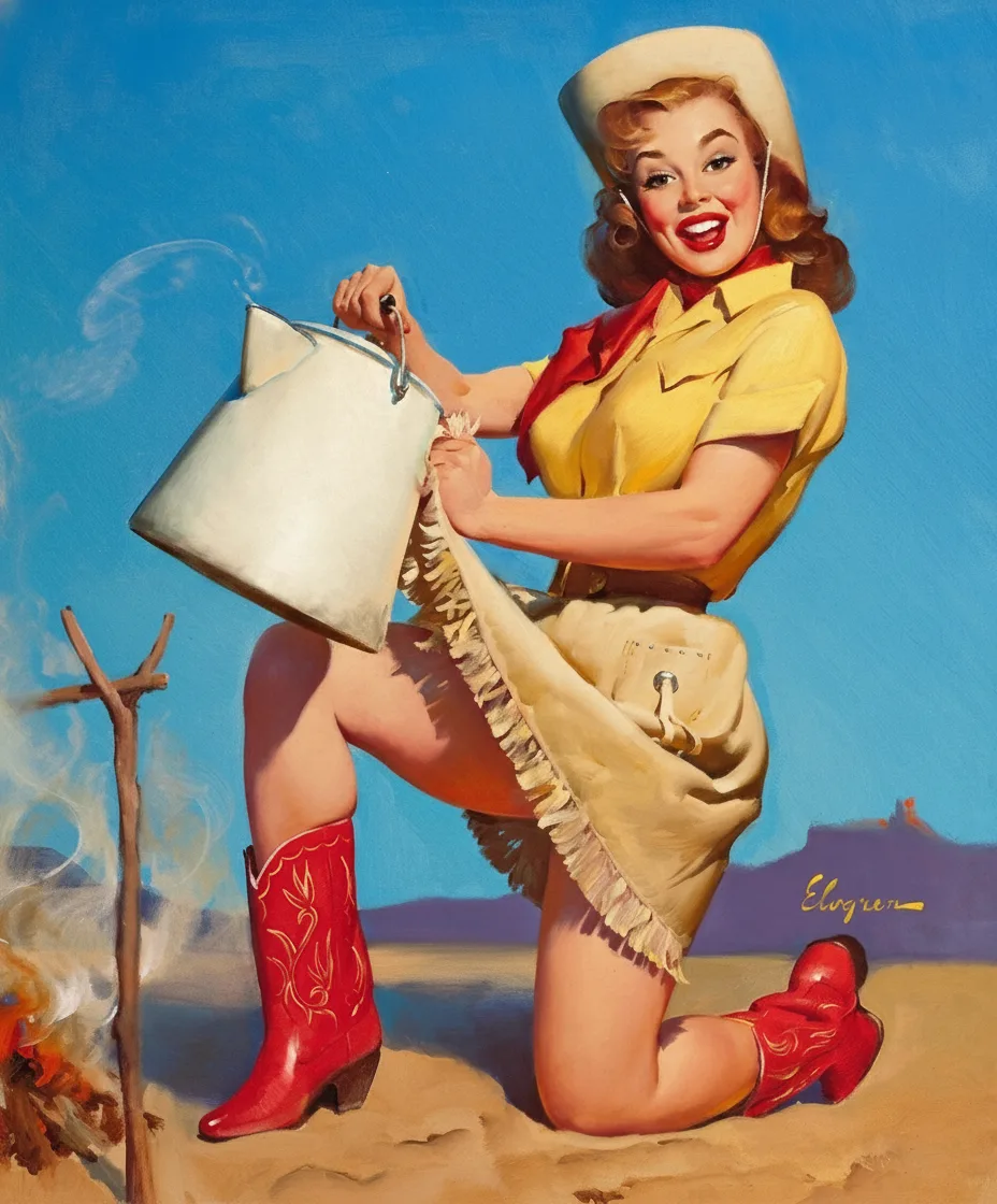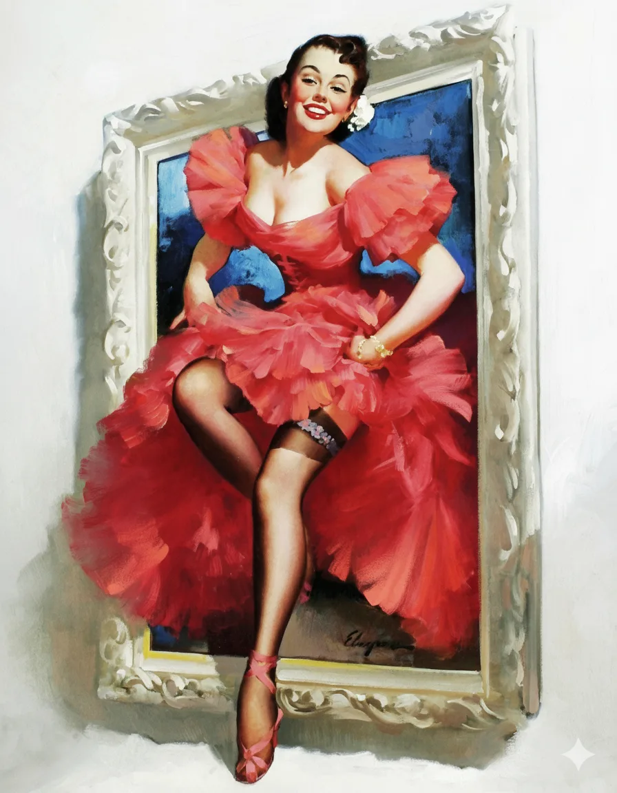 Когда я сказала, что пин-ап не боится цифрового вмешательства, я имела в виду то, что современные нейросети умеют многое, в том числе воспроизводить работы известных мастеров. Программисты научили их копировать стили, передавать настроение, угадывать штрихи, отличительные детали и сюжеты. Сегодня я представляю вам серию пин-ап иллюстраций, большинство из которых созданы в духе некоронованного короля этого легкомысленного и красивого жанра Джила Элвгрена.