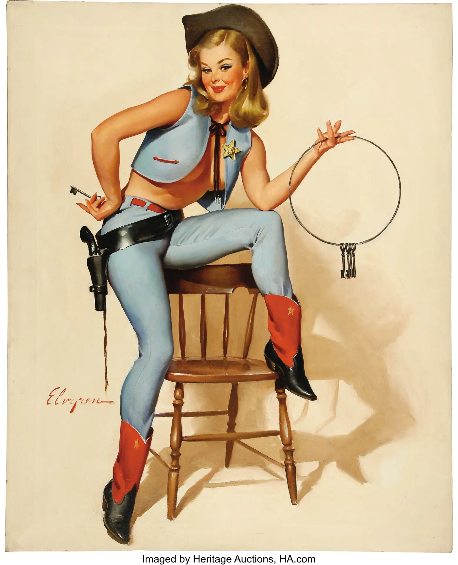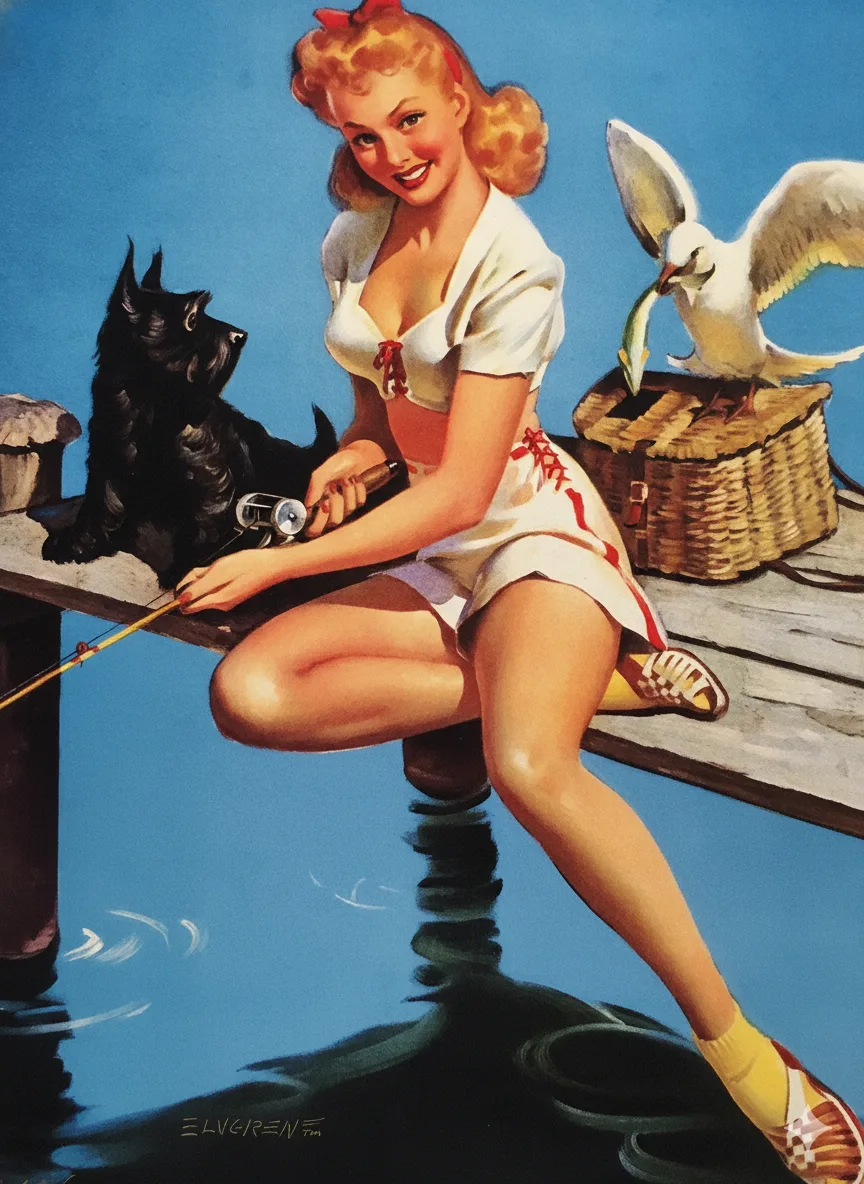 Когда Джил Элвгрен только пробовал свои силы в качестве автора пин-апа, этот жанр уже давно был на слуху. Девушки Петти, нимфы Варгаса, томные красавицы с фюзеляжей самолётов — всё это уже существовало. Но именно он превратил пин-ап в искусство. Его героини — обаятельные, живые, трогательные девушки-соседки. Их очарование не меркнет с середины прошлого века, а сохранившиеся работы Элвгрена уходят с молотка за большие деньги. Те же, кто не может позволить себе приобрести оригинал, охотно покупают постеры и книги, где есть репродукции картин художника. Или просто смотрят их в интернете.