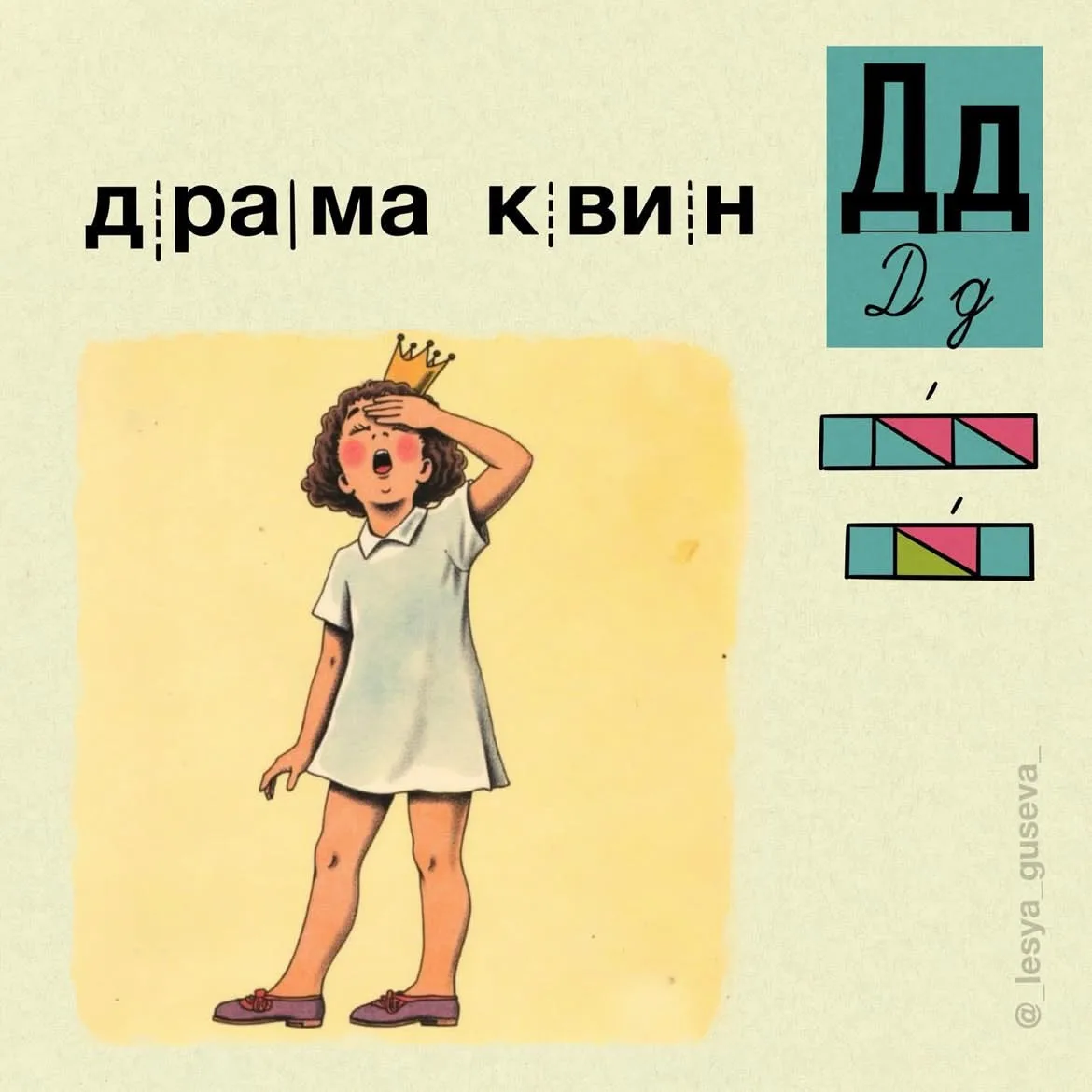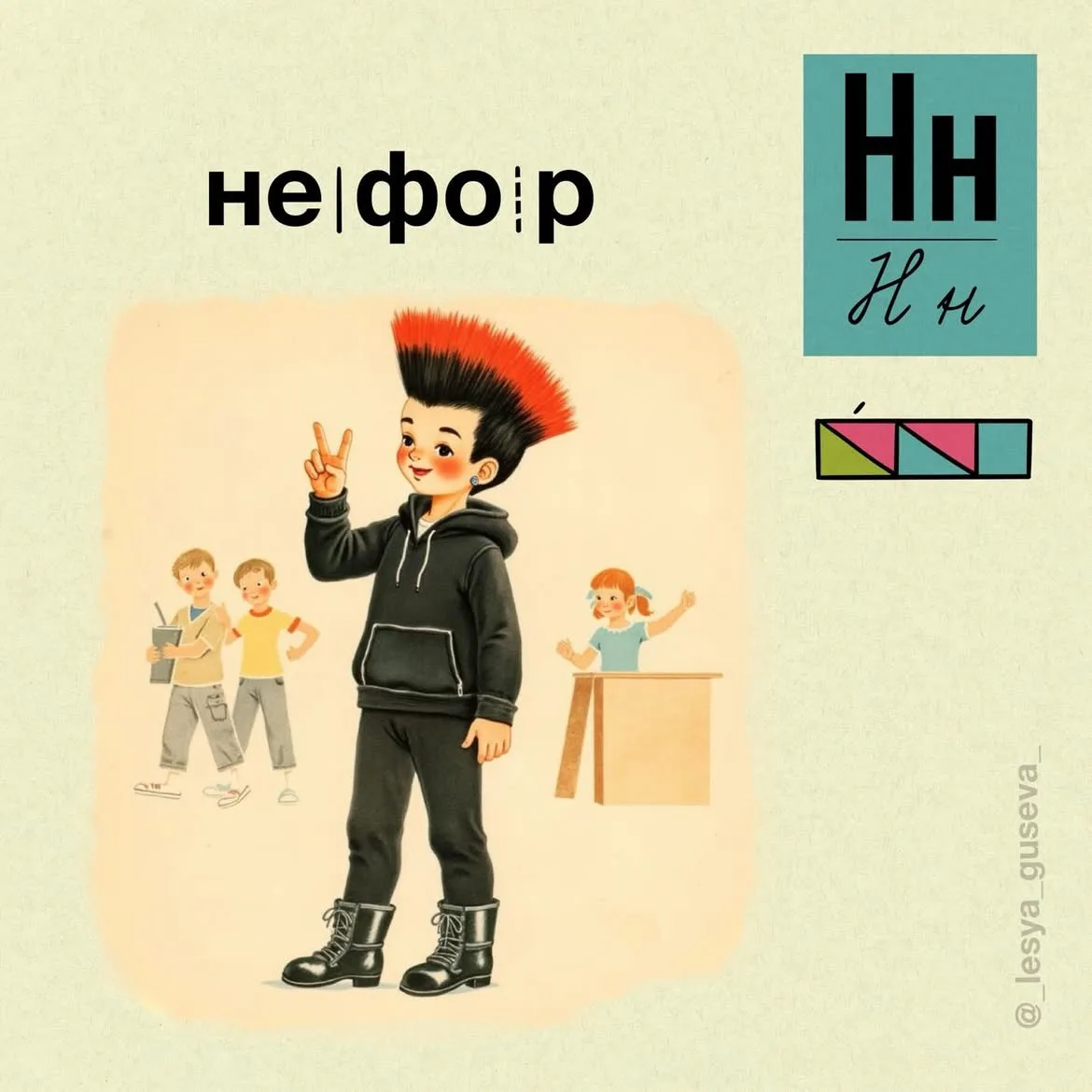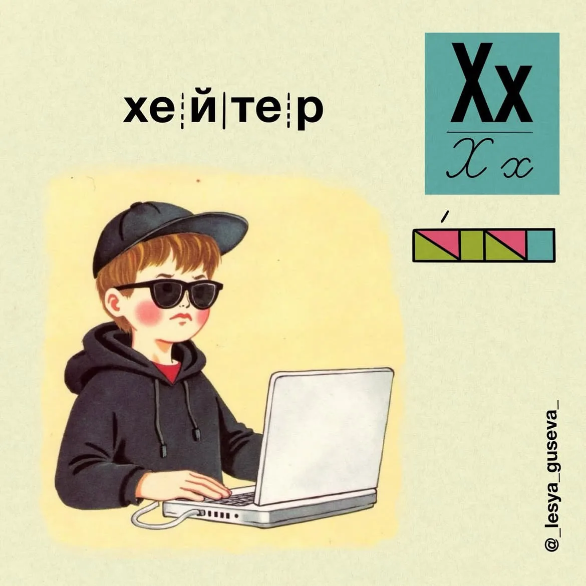 Леся Гусева как маленьким детям, постигающим в первом классе азы грамоты, в картинках показала, кто есть кто на сленге современной молодёжи. По её меткому выражению, «раньше дети читали про арбузы, теперь про абьюзы».