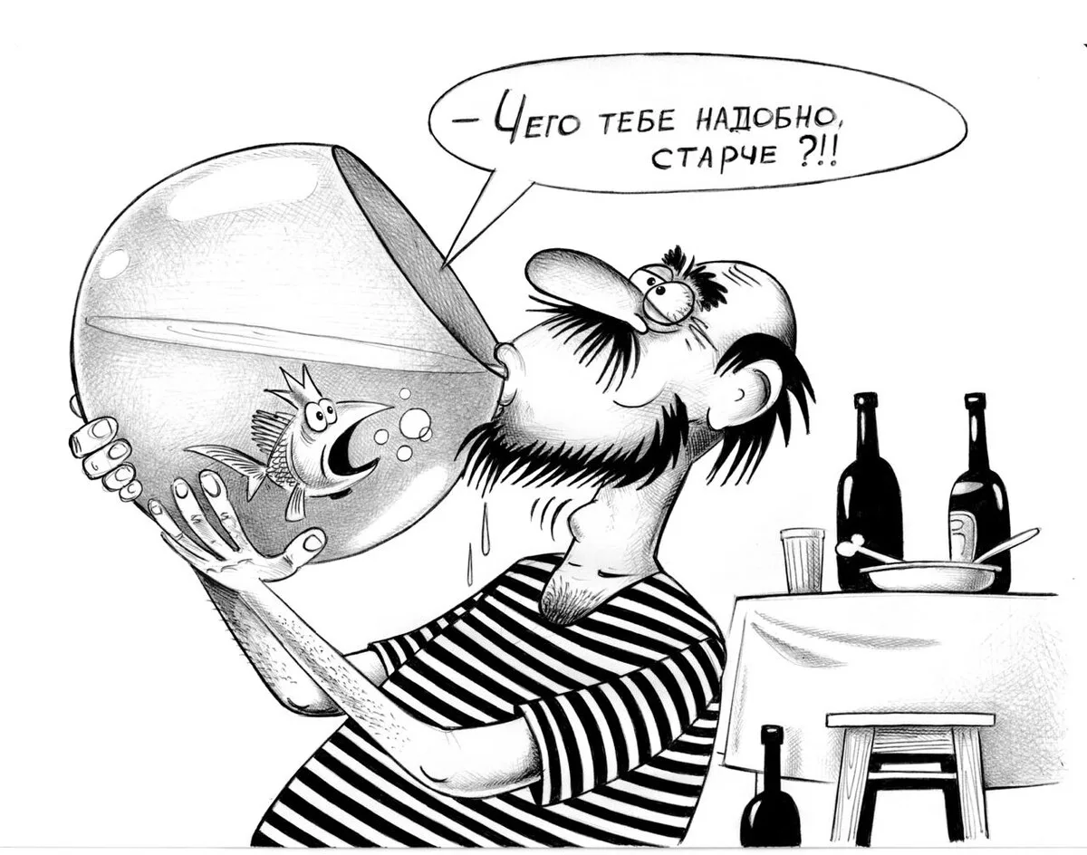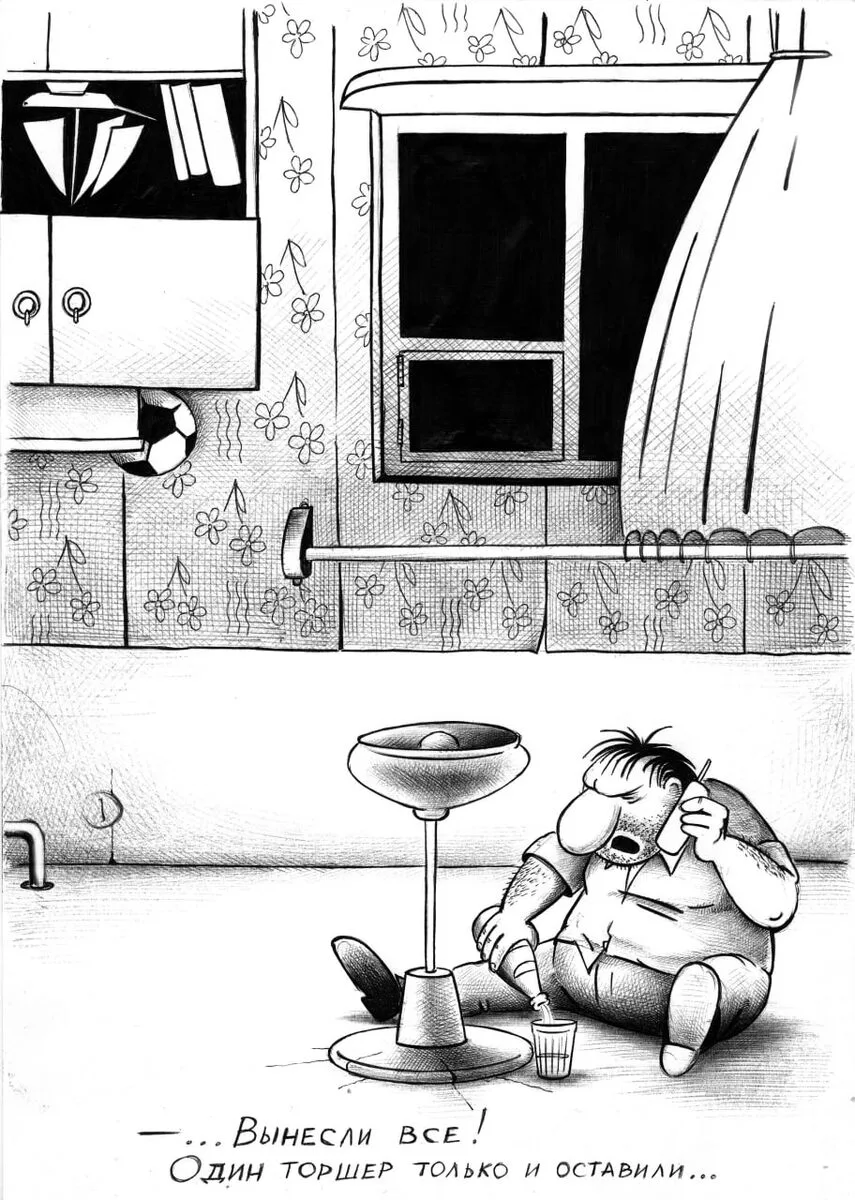 Русский юмор особенный. Он родился не от избытка, а от недостатка. От бедности, жалкого быта и невозможности изменить раздражающую действительность. И в этом контексте пьяница просто-таки идеальный герой и бунтарь. Хотя, конечно, если придуманные сюжеты перенести из карикатур в реальную жизнь, они будут выглядеть совсем не так смешно, как на рисунках.
