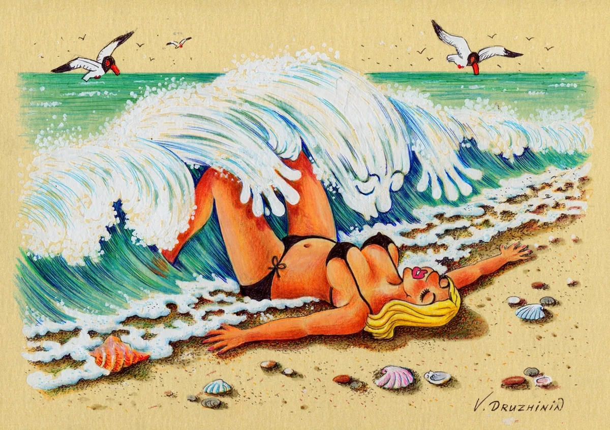 Однако Валентин Дружинин каждый раз удивляет своих поклонников. Он словно бросает вызов самому себе, пытаясь дать весёлое визуальное прочтение, например, Дня Единого здоровья. Что, не слышали о таком? Но он есть, как тот суслик из народной комедии «ДМБ». Как и День сурдопереводчика, и День гадания на кофейной гуще.