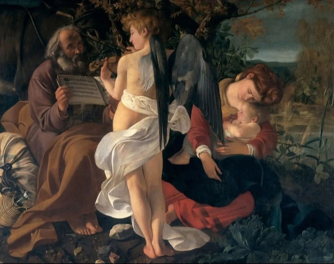 У исследователей есть предположение, что пожилой мужчина позировал также для картины Караваджо "Отдых на пути в Египет". Лоб действительно похож: