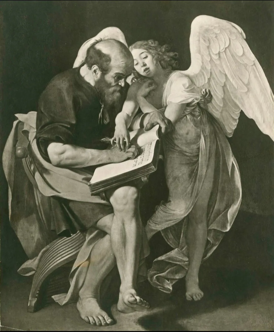 Так, в 1602 году, живописец явил миру вторую версию картины "Святой Матфей и ангел", где учёл все замечания. Теперь обратите внимание на право.