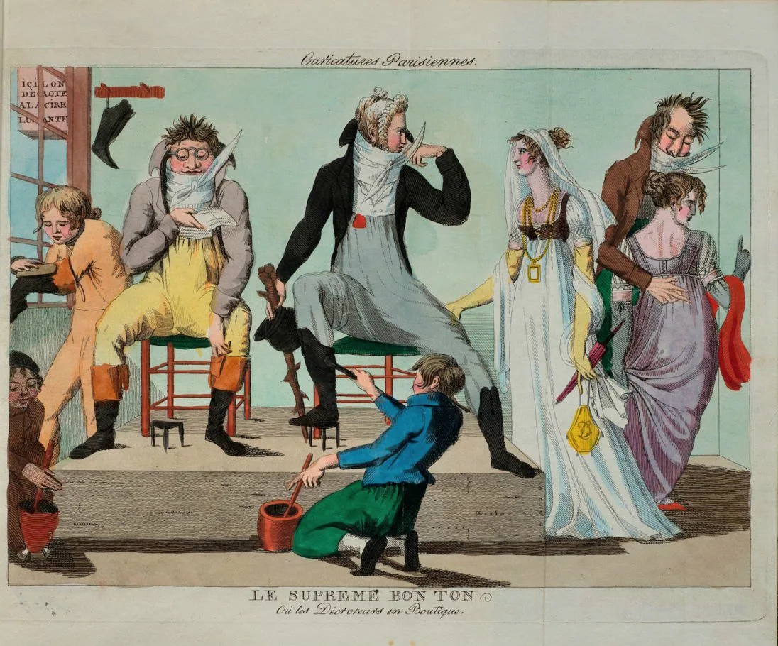 Не исключением стала и эта работа "Вершина хороших манер, или Чистильщики в лавке" (1803) из лейпцигского журнала Leipziger Moden-Magazin.