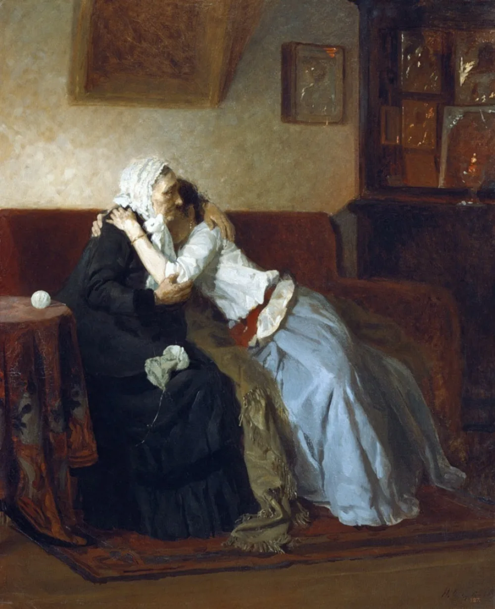 Что случилось у внучки, прильнувшей к груди своей бабушки? А может, любимой нянечки?