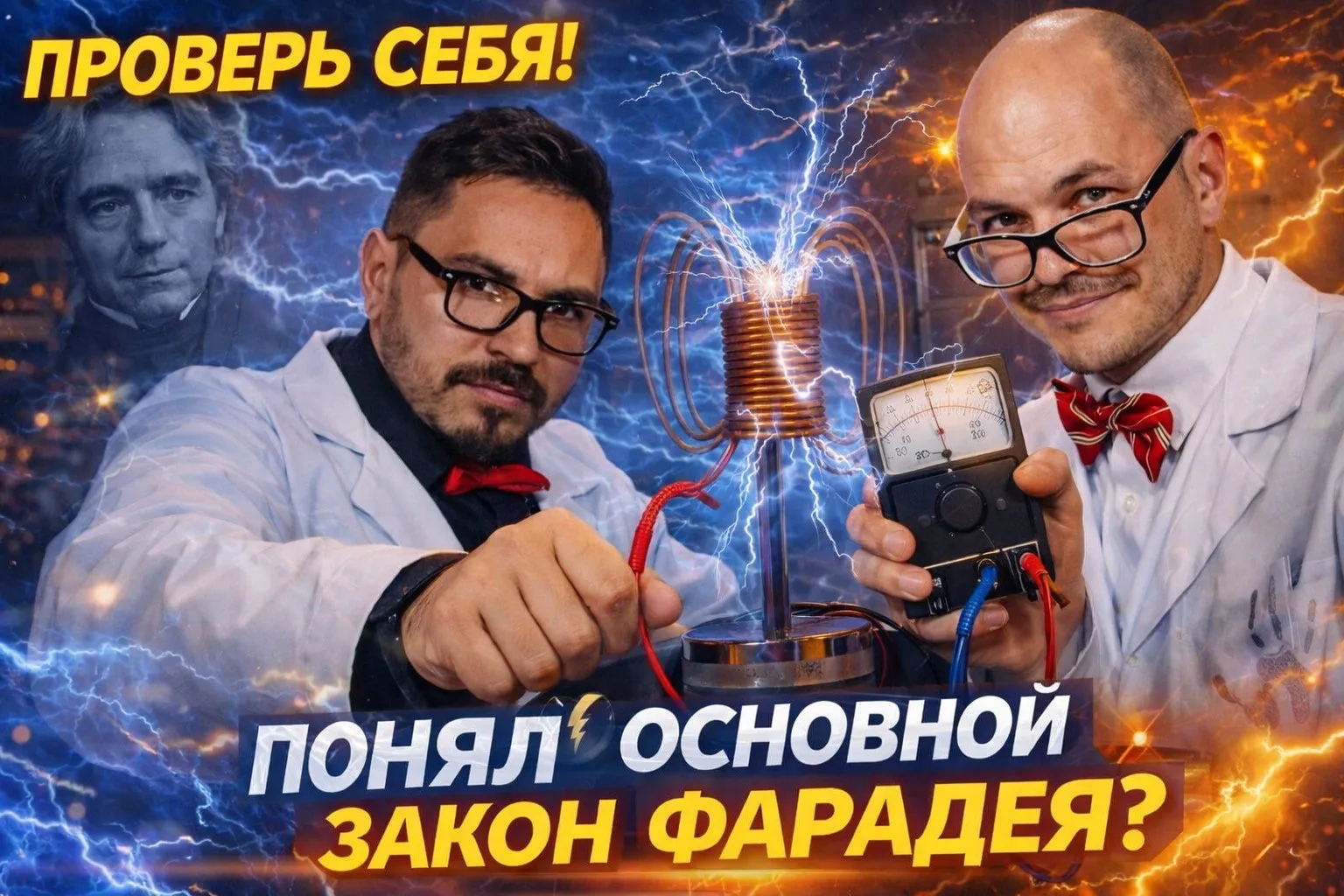Закон электромагнитной индукции Фарадея используется в технике, например: Устройство электрических генераторов — они преобразуют энергию из механической в электрическую. Работа электрических трансформаторов — они преобразуют переменный ток одного напряжения в ток другого. Принцип работы электродвигателей — через обмотку статора пропускают электрический ток, который индуцирует магнитный поток, влияющий на магнитное поле ротора. В результате возникают силы, раскручивающие вал двигателя. Действие индукционных нагревателей — на электромагнитной индукции основано действие этих устройств, используемых как в быту, так и в промышленности. Электромагнитная индукция — явление возникновения тока в замкнутом проводящем контуре при изменении магнитного потока, пронизывающего его. Явление электромагнитной индукции было открыто М. Фарадеем. Майкл Фарадей провел ряд опытов, которые помогли открыть явление электромагнитной индукции. Опыт раз. На одну непроводящую основу намотали две катушки: витки первой катушки были расположены между витками второй. Витки одной катушки были замкнуты на гальванометр, а второй — подключены к источнику тока. При замыкании ключа и протекании тока по второй катушке в первой возникал импульс тока. При размыкании ключа также наблюдался импульс тока, но ток через гальванометр тек в противоположном направлении. Опыт два. Первую катушку подключили к источнику тока, а вторую — к гальванометру. При этом вторая катушка перемещалась относительно первой. При приближении или удалении катушки фиксировался ток. Опыт три. Катушка замкнута на гальванометр, а магнит движется вдвигается (выдвигается) относительно катушки .❤️ Не забудь подписаться, чтобы не пропустить новые приключения https://max.ru/art_druzya #страх #любопытство #эксперимент #террариум #Челлендж #Приключения