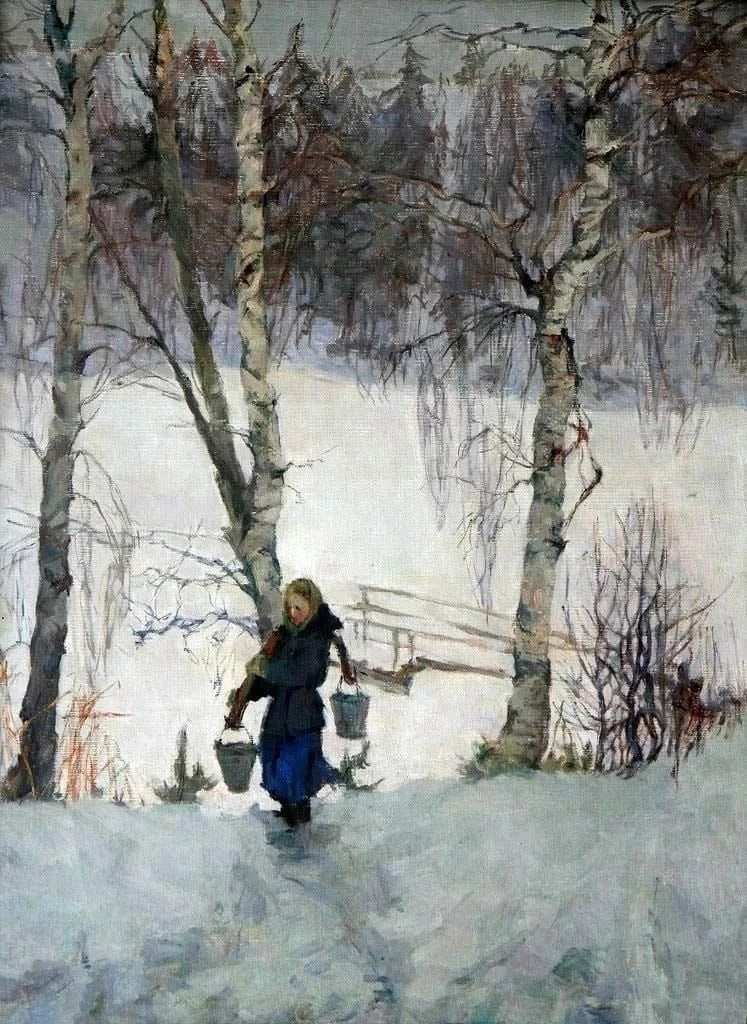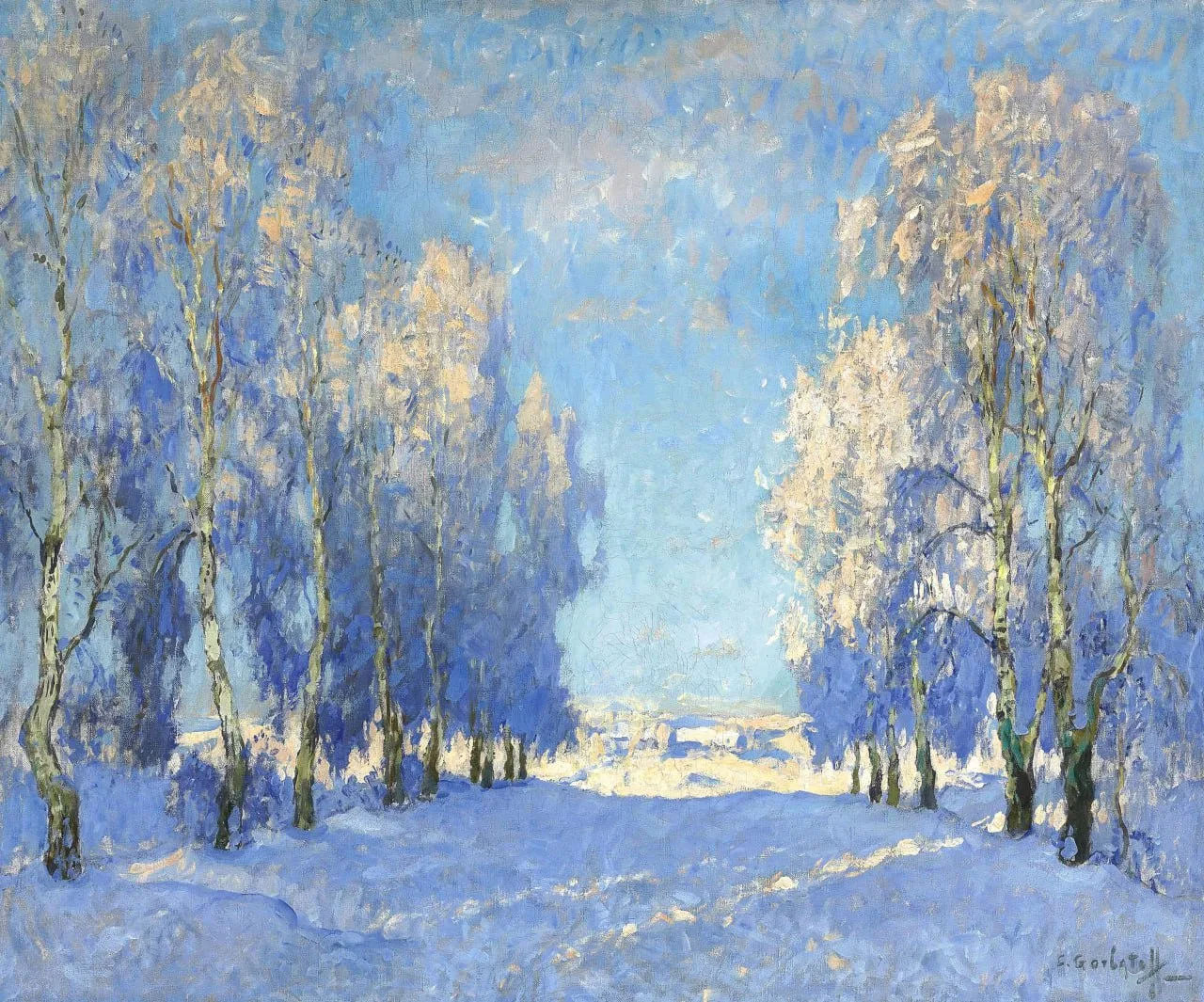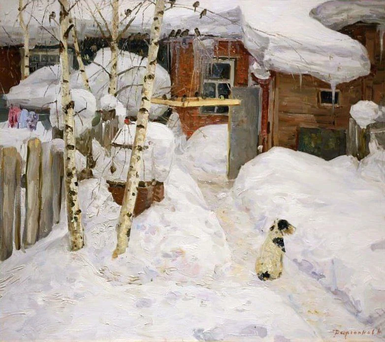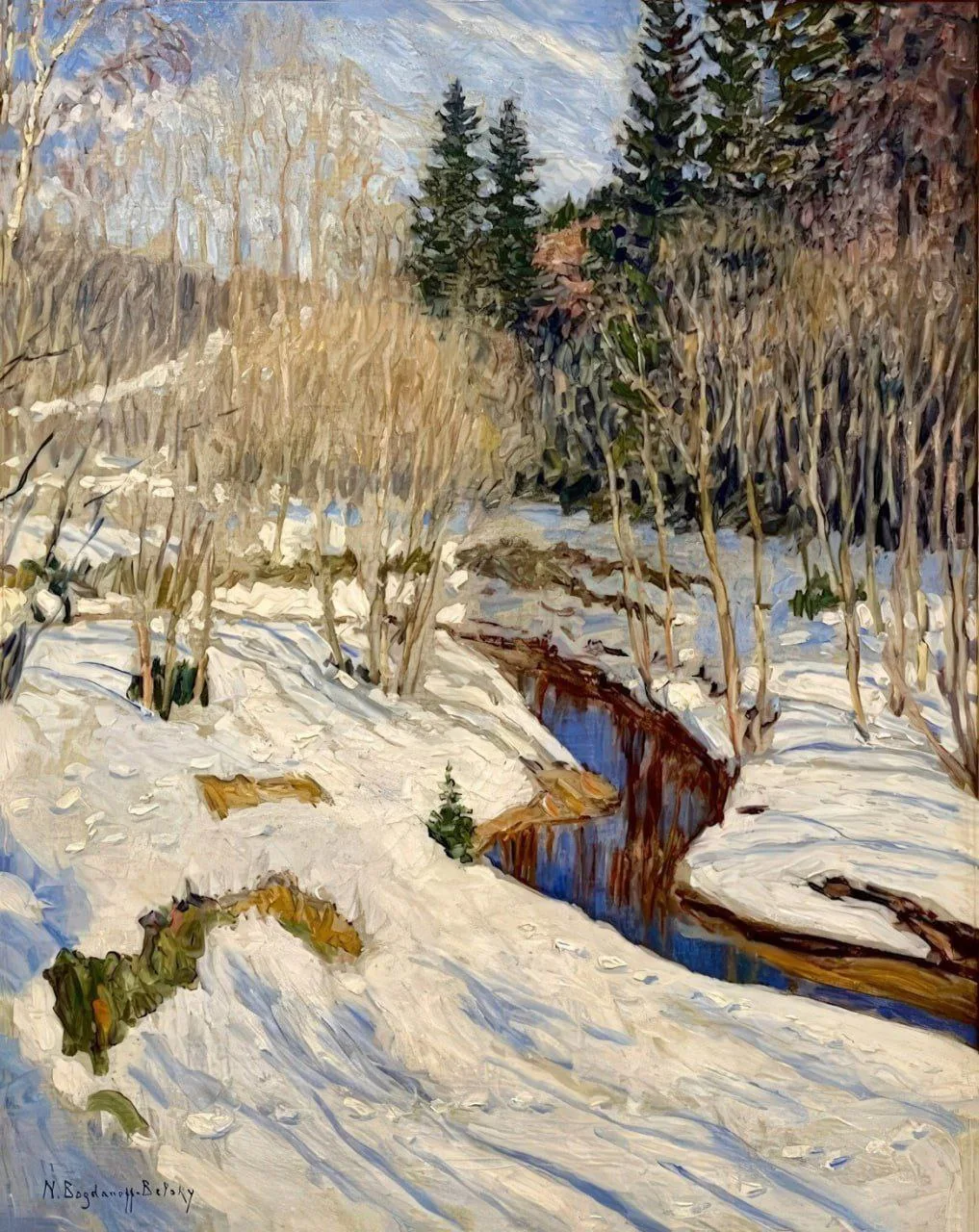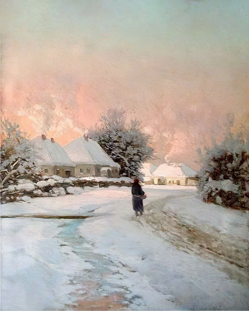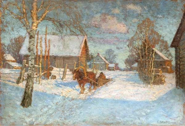 Живопись снега с голубыми и розовыми рефлексами на полотне предвосхищает находки отечественных импрессионистов.
