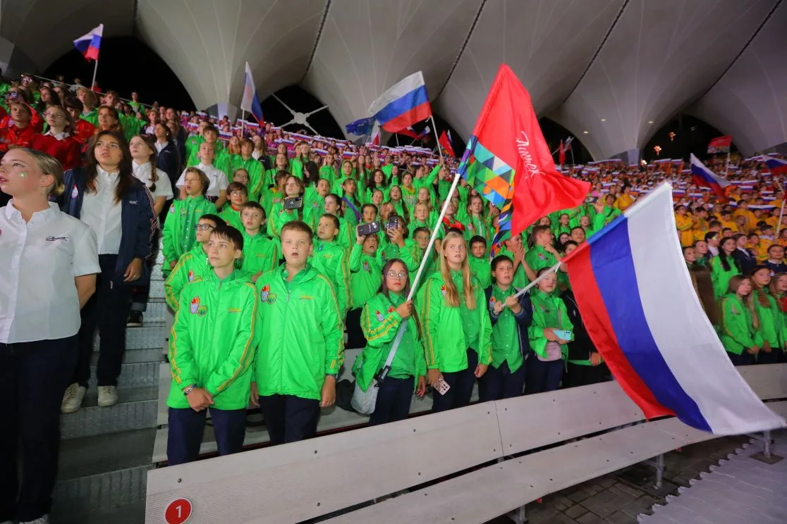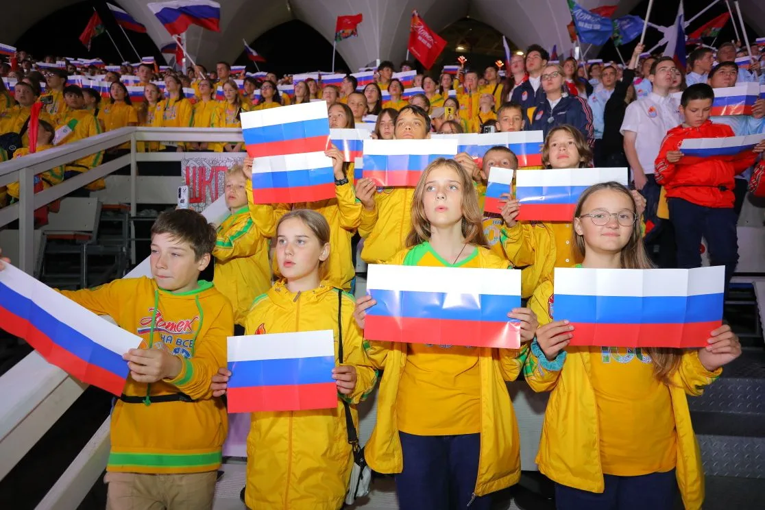Более трех тысяч школьников со всей России и 9 стран исполнили Гимн Российской Федерации на закрытии смены.