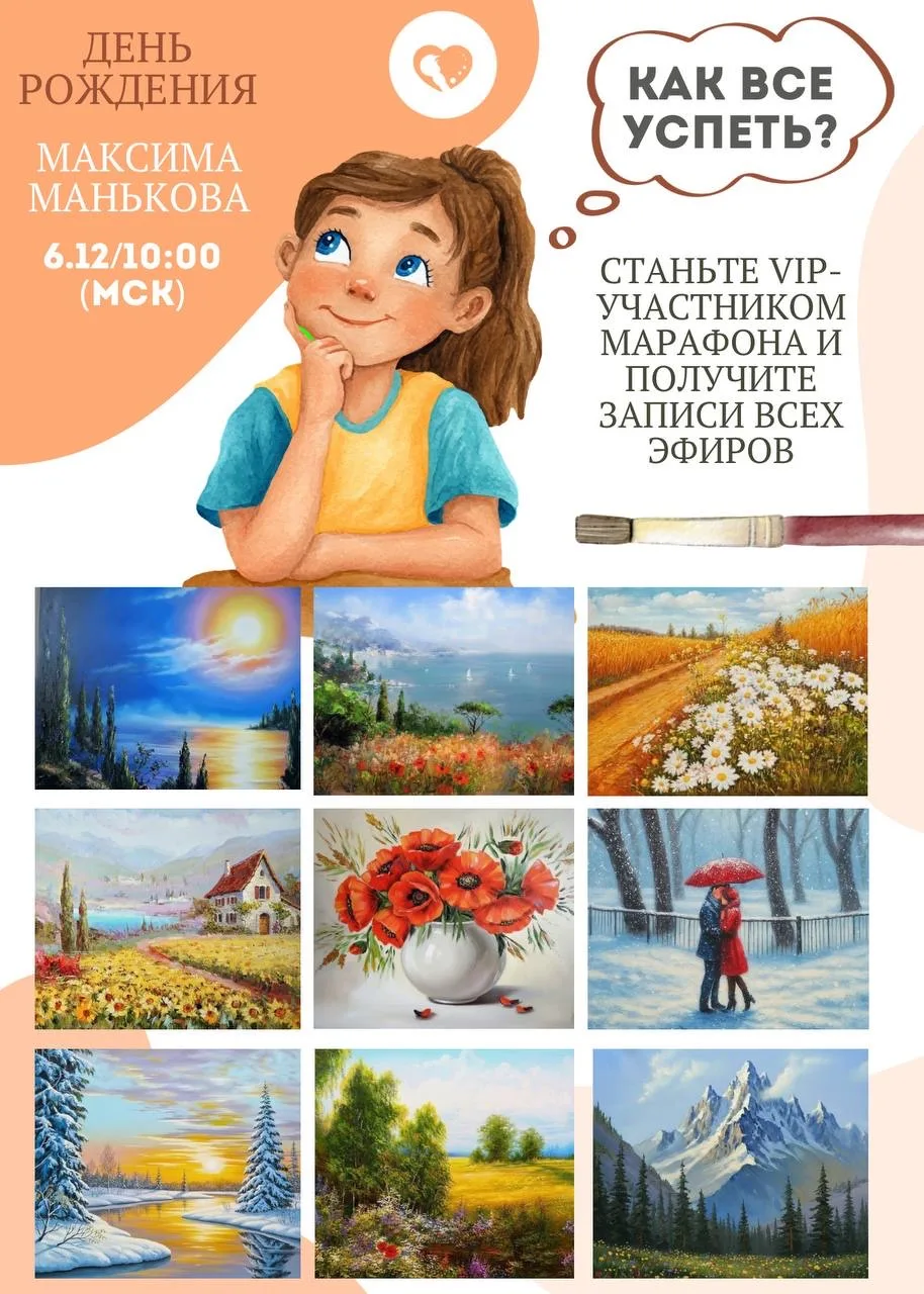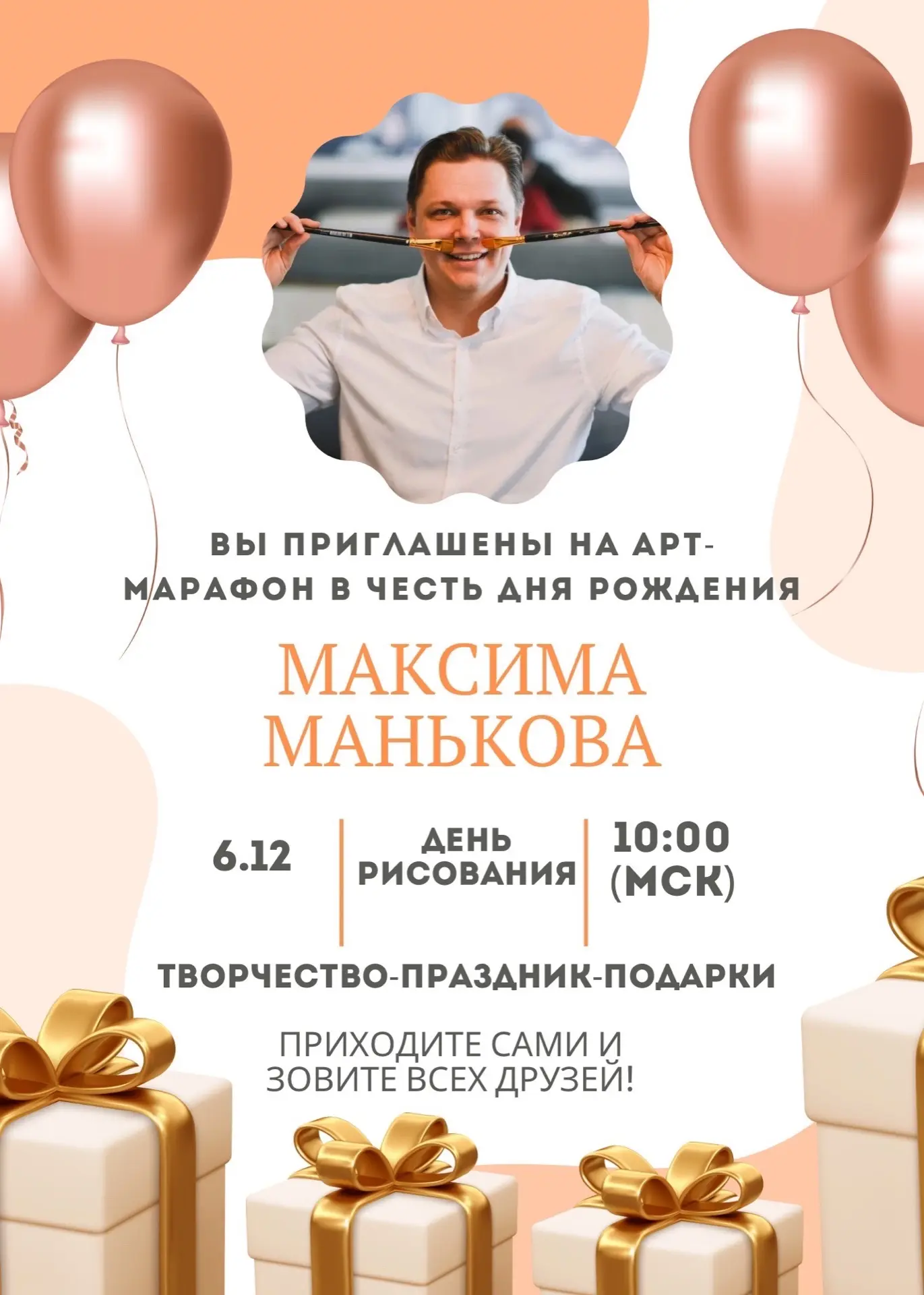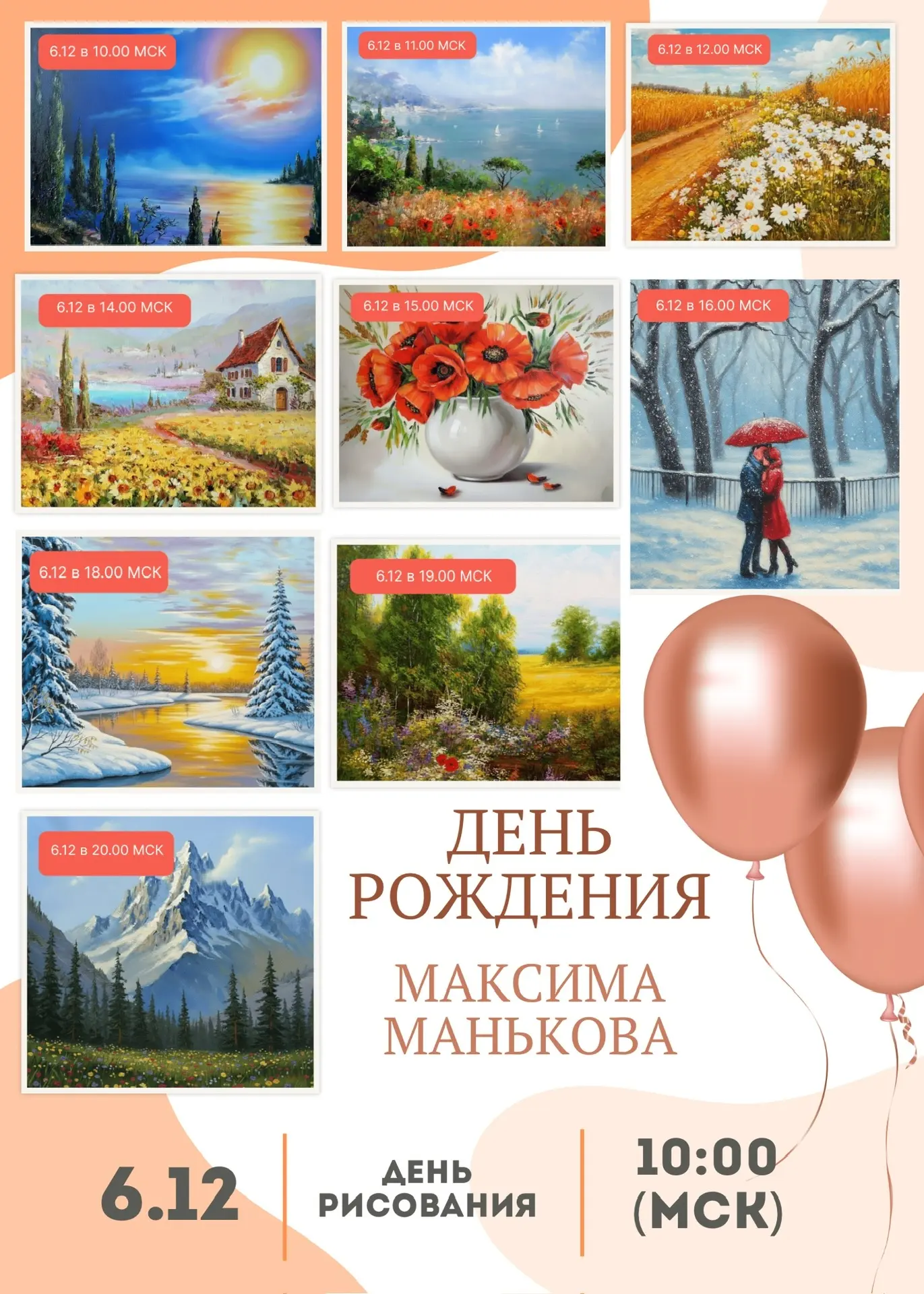 С 10:00 (мск) встречаем нашего именинника Максима Манькова и начинаем самое яркое путешествие мир творчества, наполненное волшебством и чудесными картинами:
