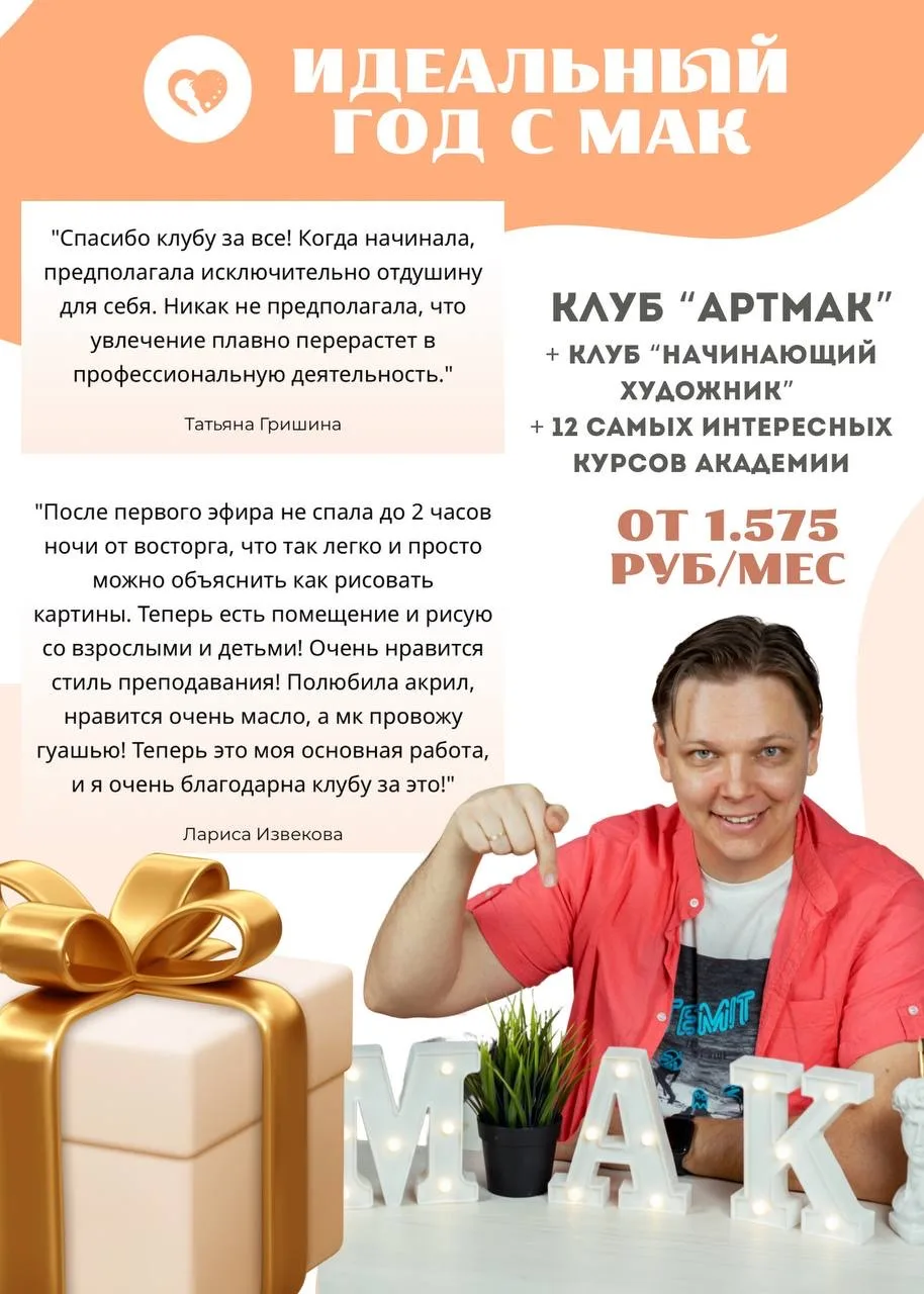 Идеальный год с МАК = Клуб «Начинающий художник» + Клуб «АртМак» по СПЕЦИАЛЬНОЙ ЦЕНЕ❗️
