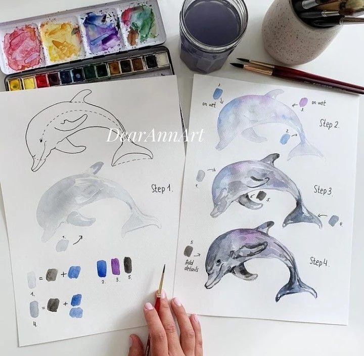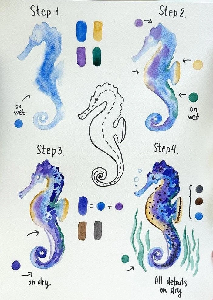 Знаем, что вы любите подборки с мини-инструкциями и поэтапным рисованием от разных авторов, поэтому не смогли сдержаться… Собрали для вас полезный пост для нашей традиционной творческой разминки в морской тематике🐋