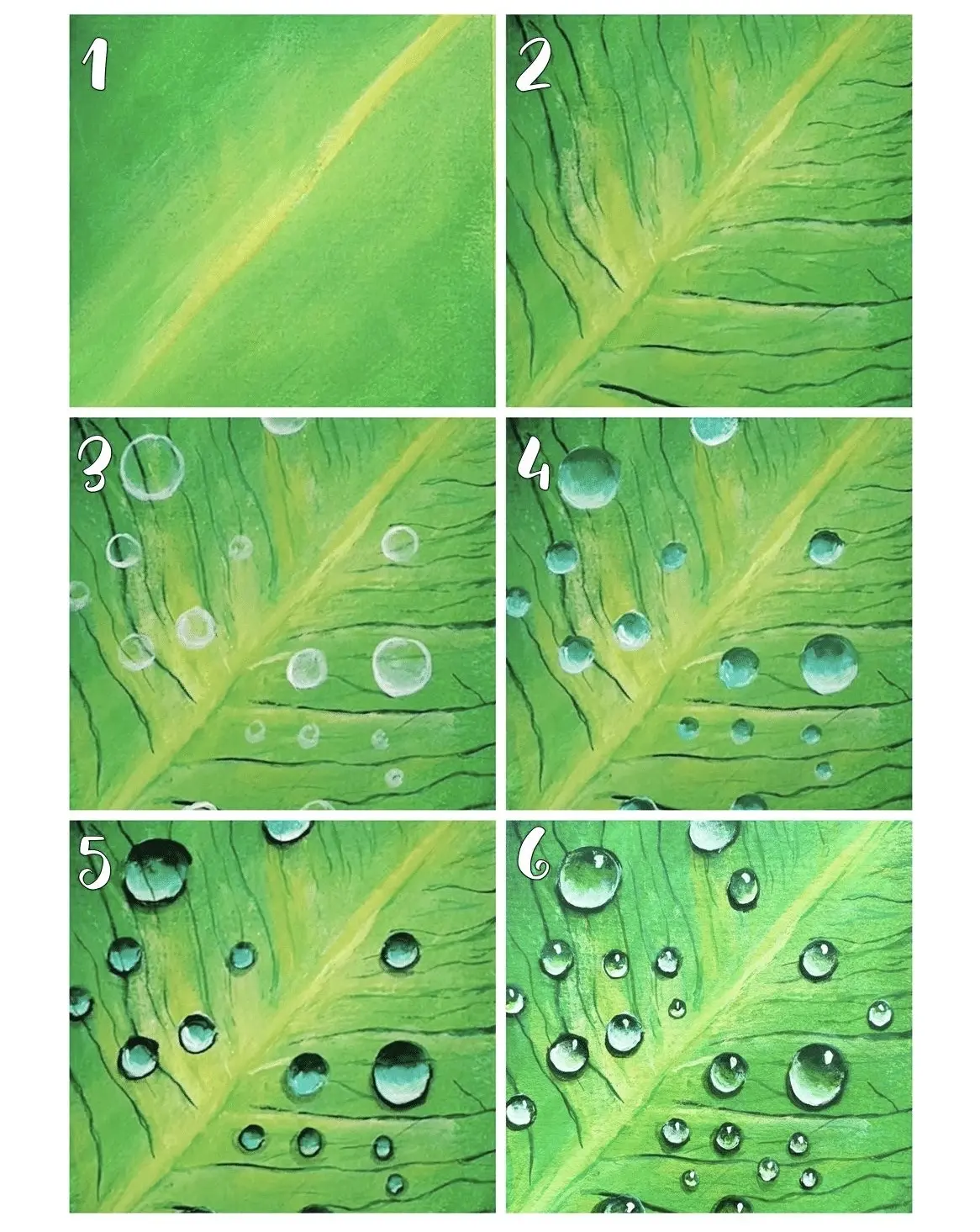 Небольшая, но очень полезная арт-практика этого дня — учимся рисовать реалистичные капли вместе с поэтапными уроками от автора Debasree Dey Art.