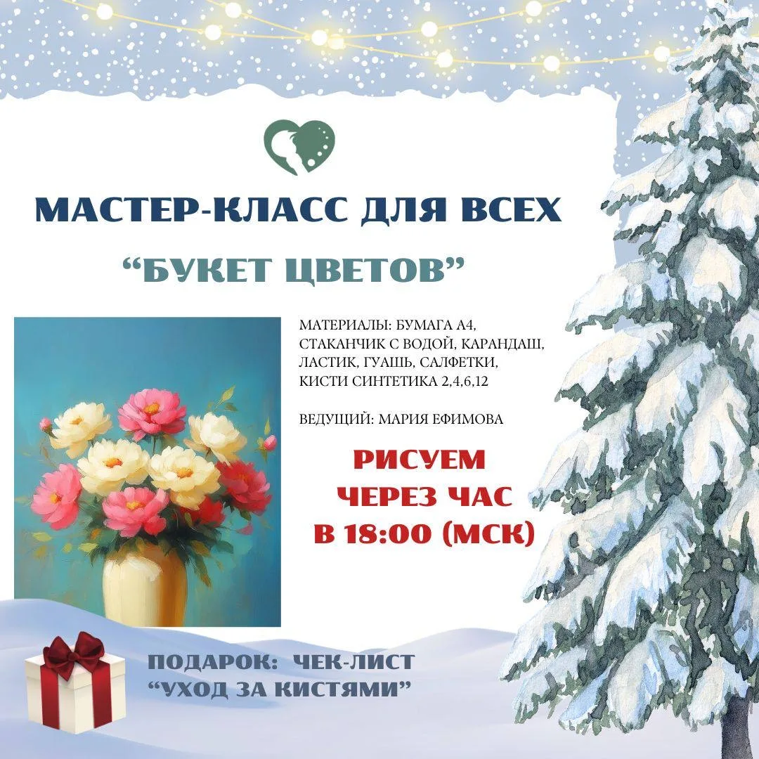 Третий день «Новогодней Ярмарки Рисования 2026» завершается чудесным мастер-классом для всех участников — оттачиваем навыки работы с гуашью и пишем красивый «Букет цветов»!