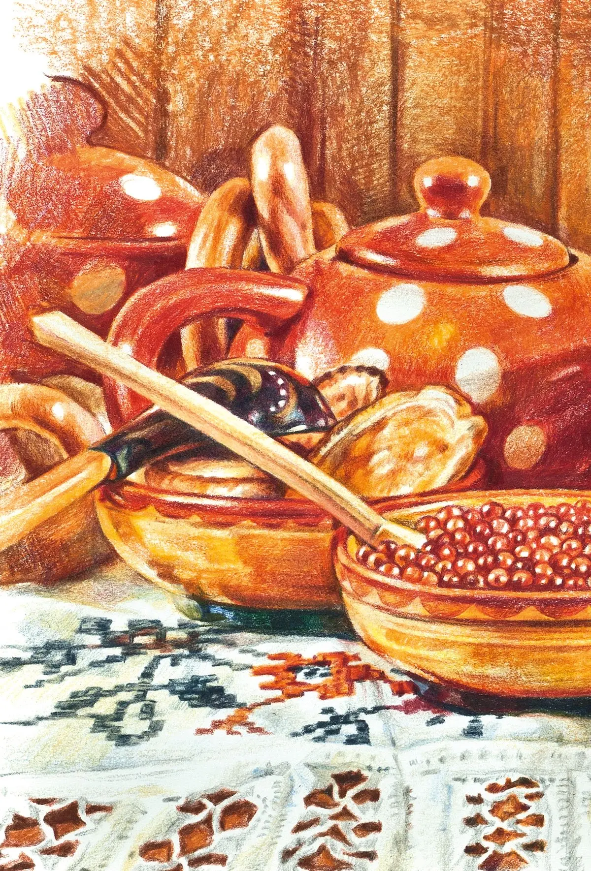 ☑️рисуем картину «Натюрморт с икрой и сушками» (автор картины: L.Chemoganiva);