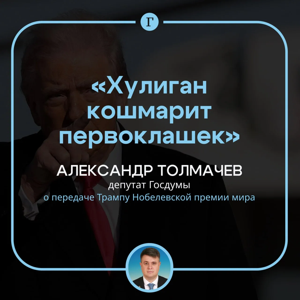💬 «Мачадо положила к ногам Трампа свою медаль. Фарс: это не сделает его самого нобелевским лауреатом, но он, похоже, всерьез себя им считает», — заявил «Газете.Ru» депутат Александр Толмачев.
