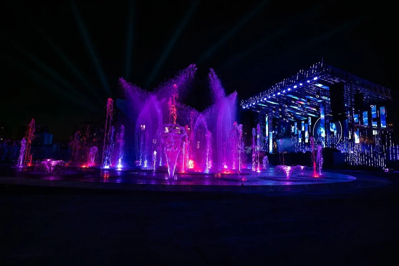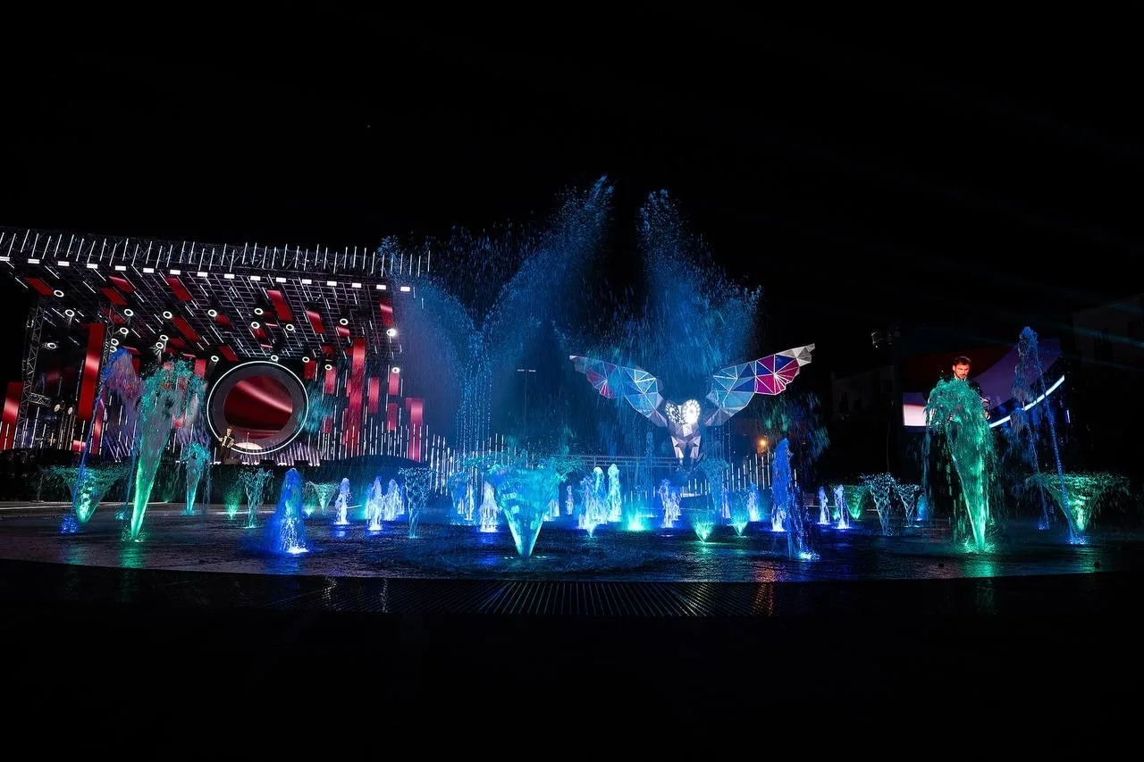 Посмотрели с жителями первое представление — действительно впечатляет. Сто шестьдесят девять струй танцуют под музыку Чайковского, а на водном экране оживают истории о нашем крае.