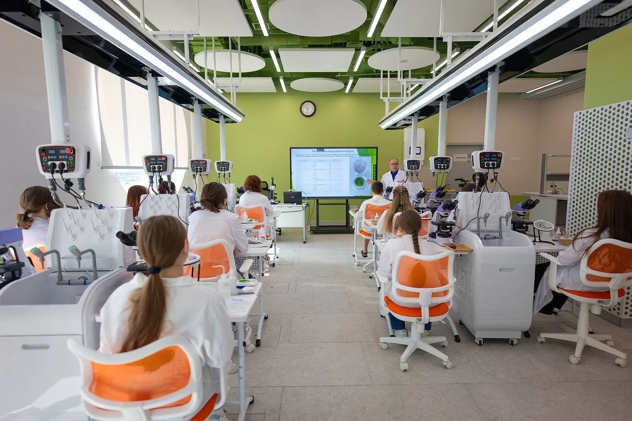 Теперь это территория возможностей для детей: школа с новейшими лабораториями физики, химии и биологии, где можно на практике познавать эти сложные науки. Появились мастерские для операторов дронов и автотренажёр. Особое внимание уделили медицинскому направлению — ребята смогут глубже изучать анатомию, генетику и основы первой помощи. Всё это поможет ближе знакомиться с профессиями уже со школьной скамьи.