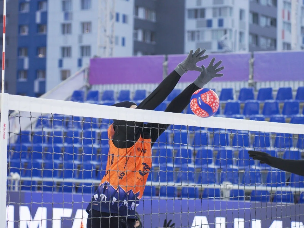 В Новом Уренгое принимаем первый этап Чемпионата России по волейболу на снегу. Вопреки погоде, на Ленинградском проспекте жарко с самого утра 🔥