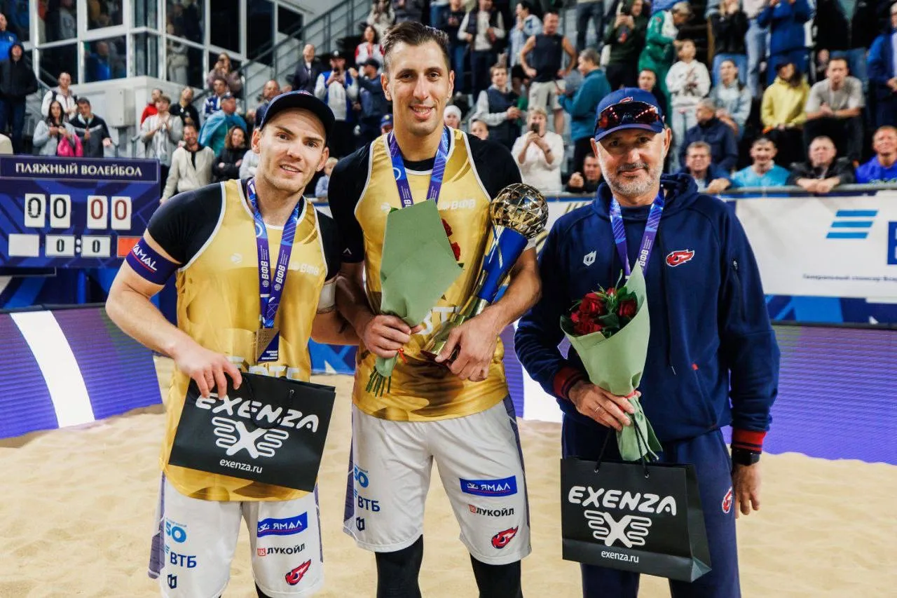 В решающей схватке парни победили соперников из «Обнинска» со счётом 2:0. Для Ильи Лешукова это пятый чемпионский титул, для Олега Стояновского — восьмой. Теперь он самый титулованный пляжник в нашей стране за всю историю. Готовил ребят бессменный тренер Вячеслав Нирка.