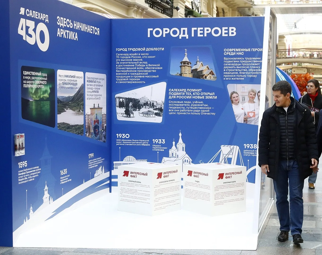 Посетил выставку о Ямале в самом центре Москвы. Оформили стенды на Красной площади в ГУМе, чтобы как можно больше наших соотечественников и гостей страны смогли познакомиться с Ямалом, вдохновиться северным колоритом и атмосферой наших юбилейных городов.