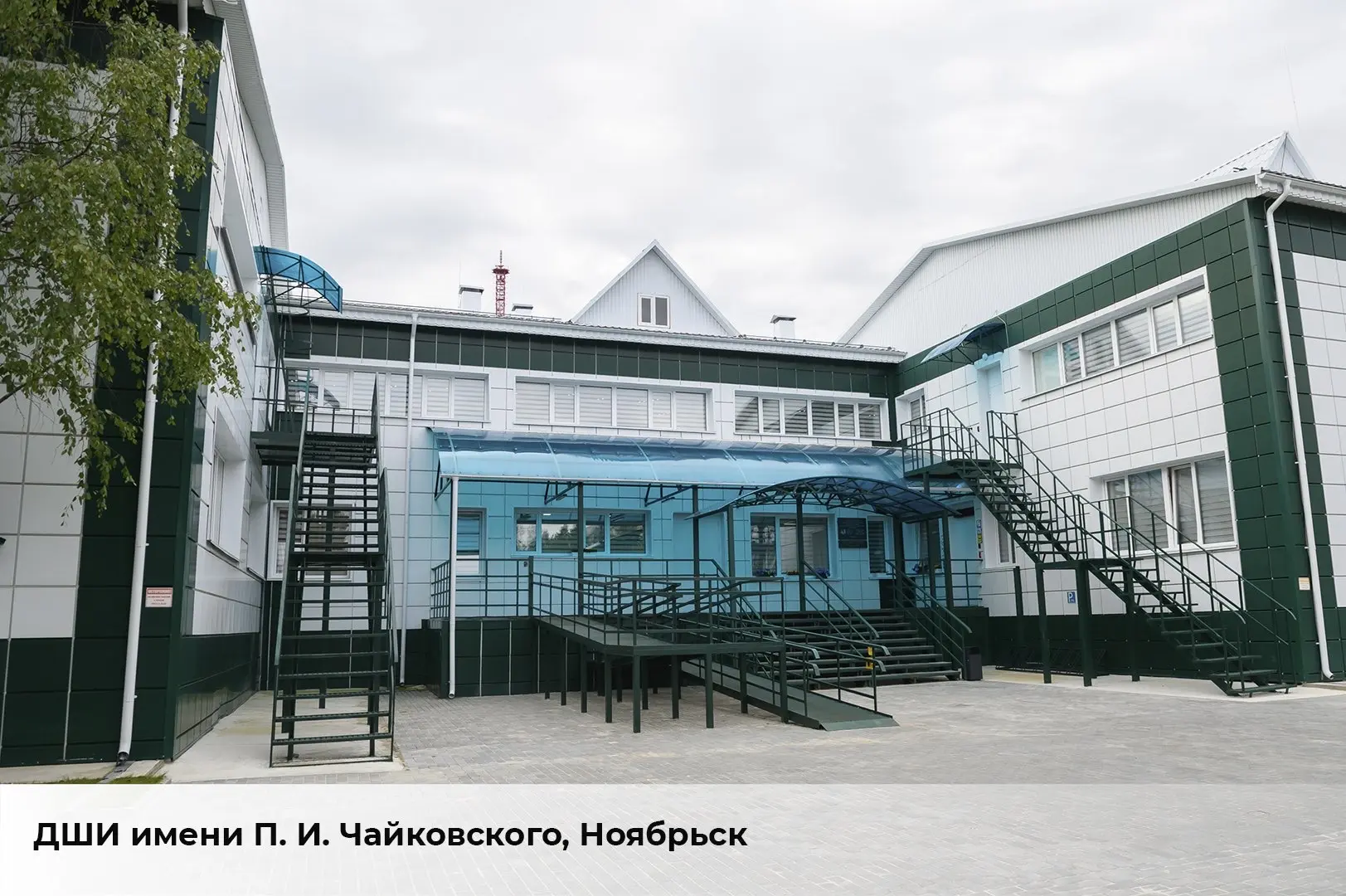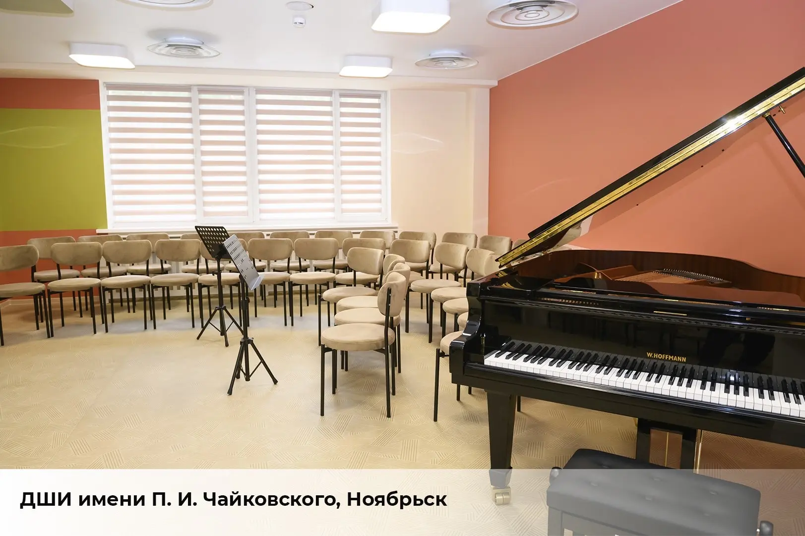 ✔️ В Ноябрьске первый корпус ДШИ имени П. И. Чайковского тоже откроется в сентябре. Сюда переедут больше 500 воспитанников музыкального и хореографического отделений. У ребят в распоряжении будут современные классы и обновлённый концертный зал с прекрасной акустикой и светом.