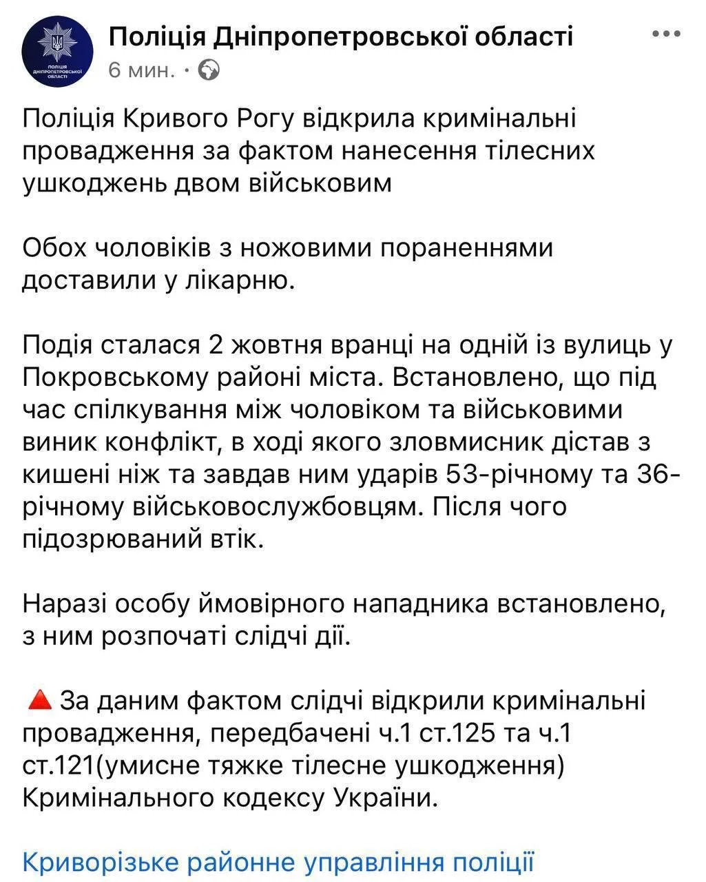 В Кривом Роге мужчина защищаясь от группового нападения с целью похищения, порезал ножом двух ТЦКшников-полицаев.