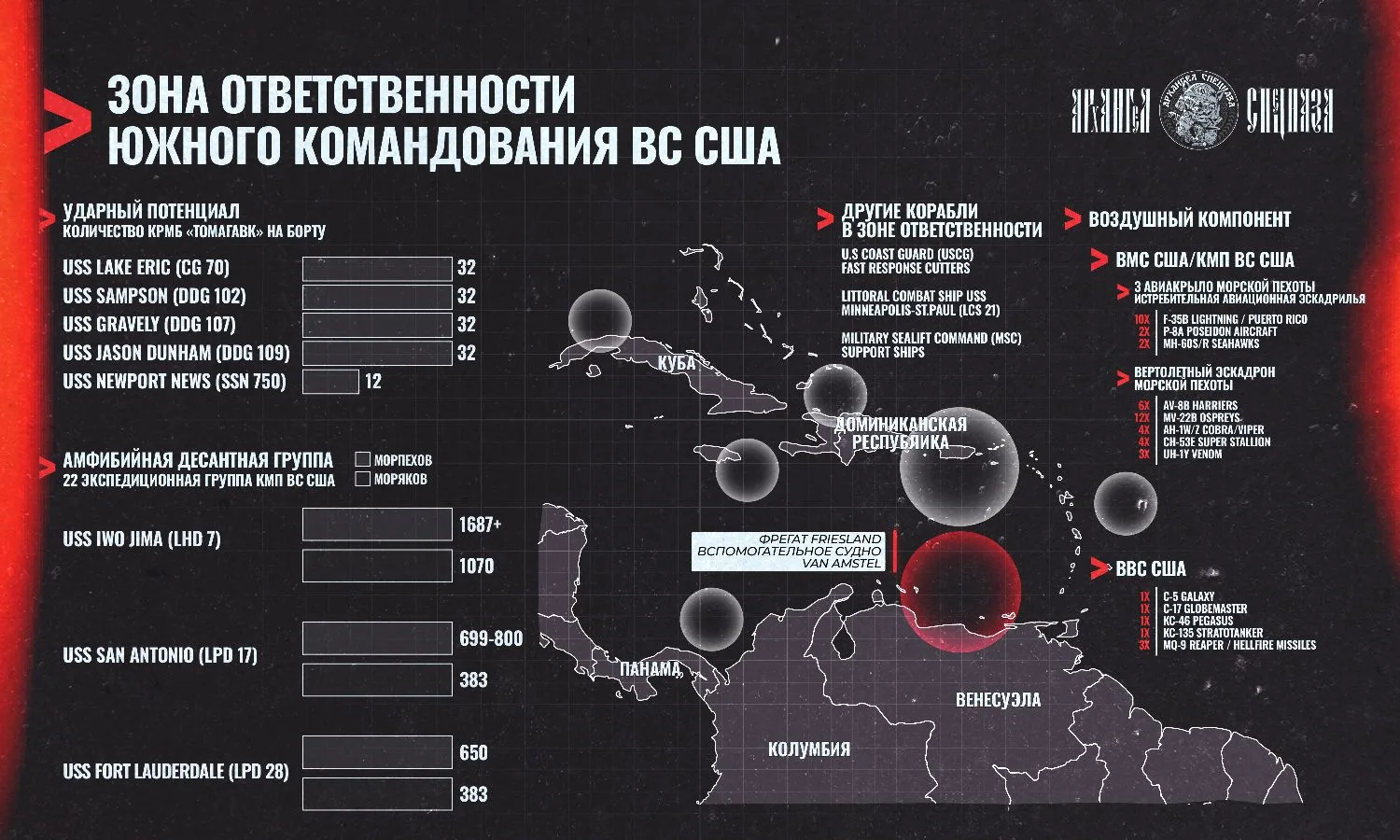 Ради этой цели американцы стянули доселе невиданную группировку к берегам Венесуэлы. При этом также в регионе на ротационной основе действуют и другие корабли. Например, на днях засветились два нидерландских корабля, базирующиеся на Кюрасао.