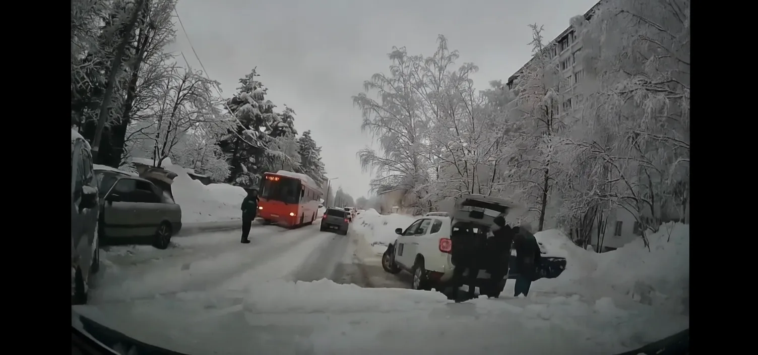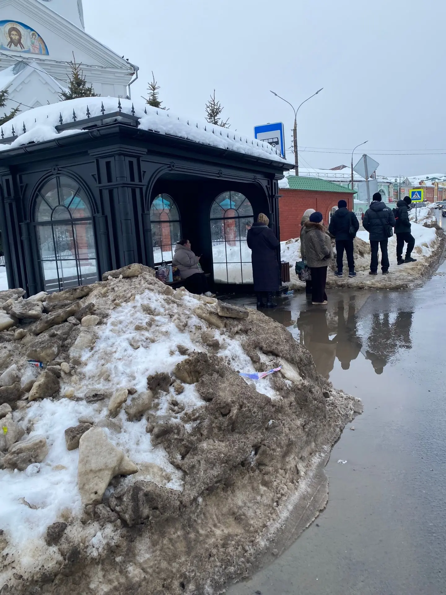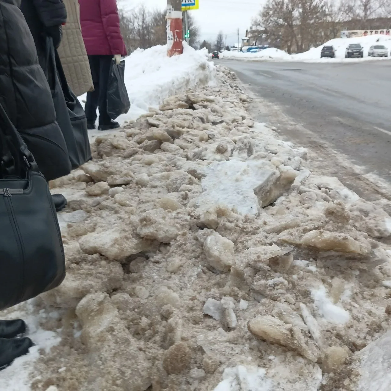 Стоим на остановке у Коммаша, ждем автобус. Но если даже дождемся, то в автобус проберутся лишь не все🤪 Тут ноги должны быть из титана, чтоб через эти ледяные глыбы пройти👎