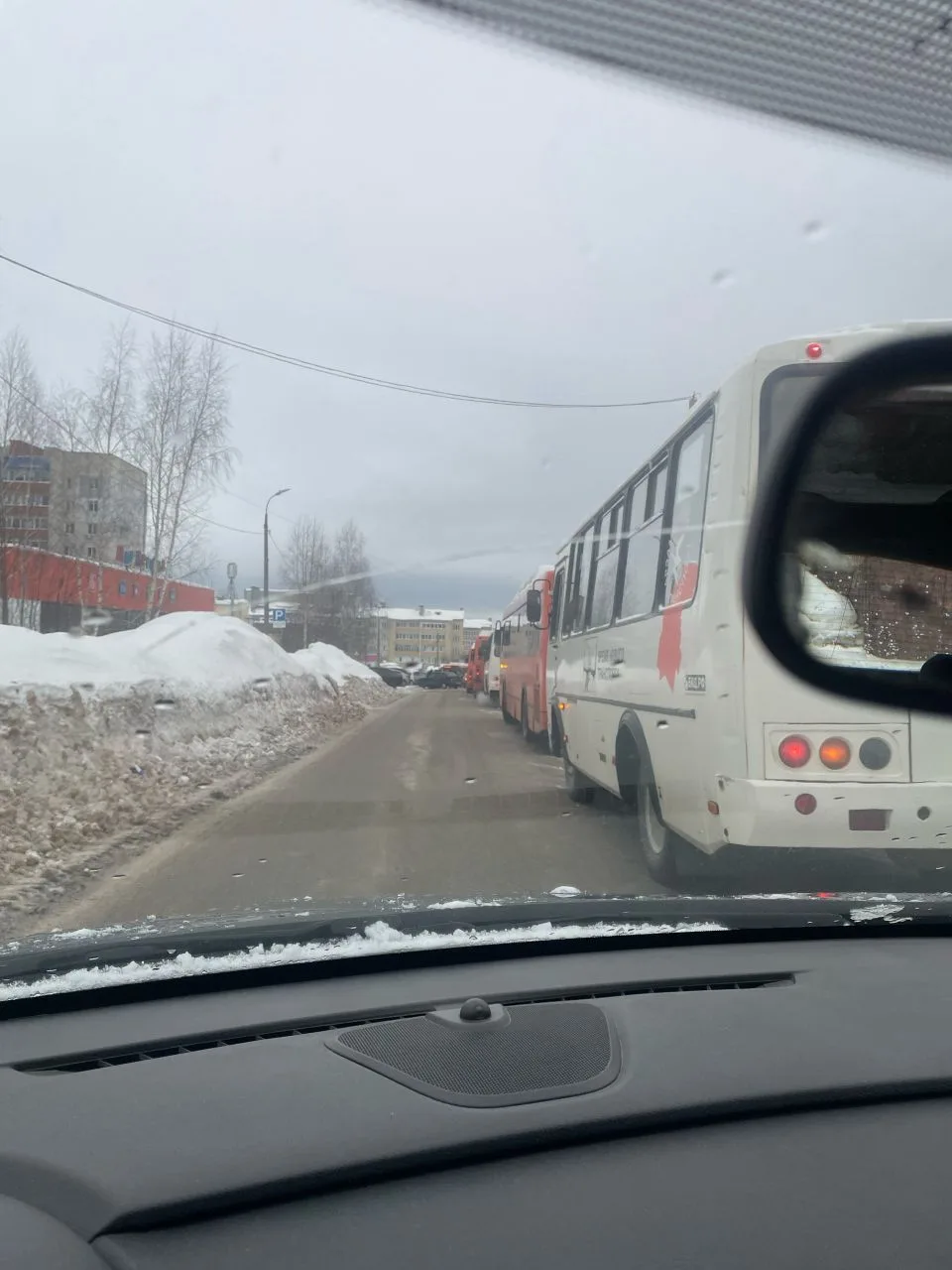 От нашего подписчика: Стоят на дороге и ходят за мусором в автосалон,а остальным они говорят что дороги нет,жалуйтесь в администрацию. И при этом создали пробку от перекрестка до поворота на улицу Лермонтова.