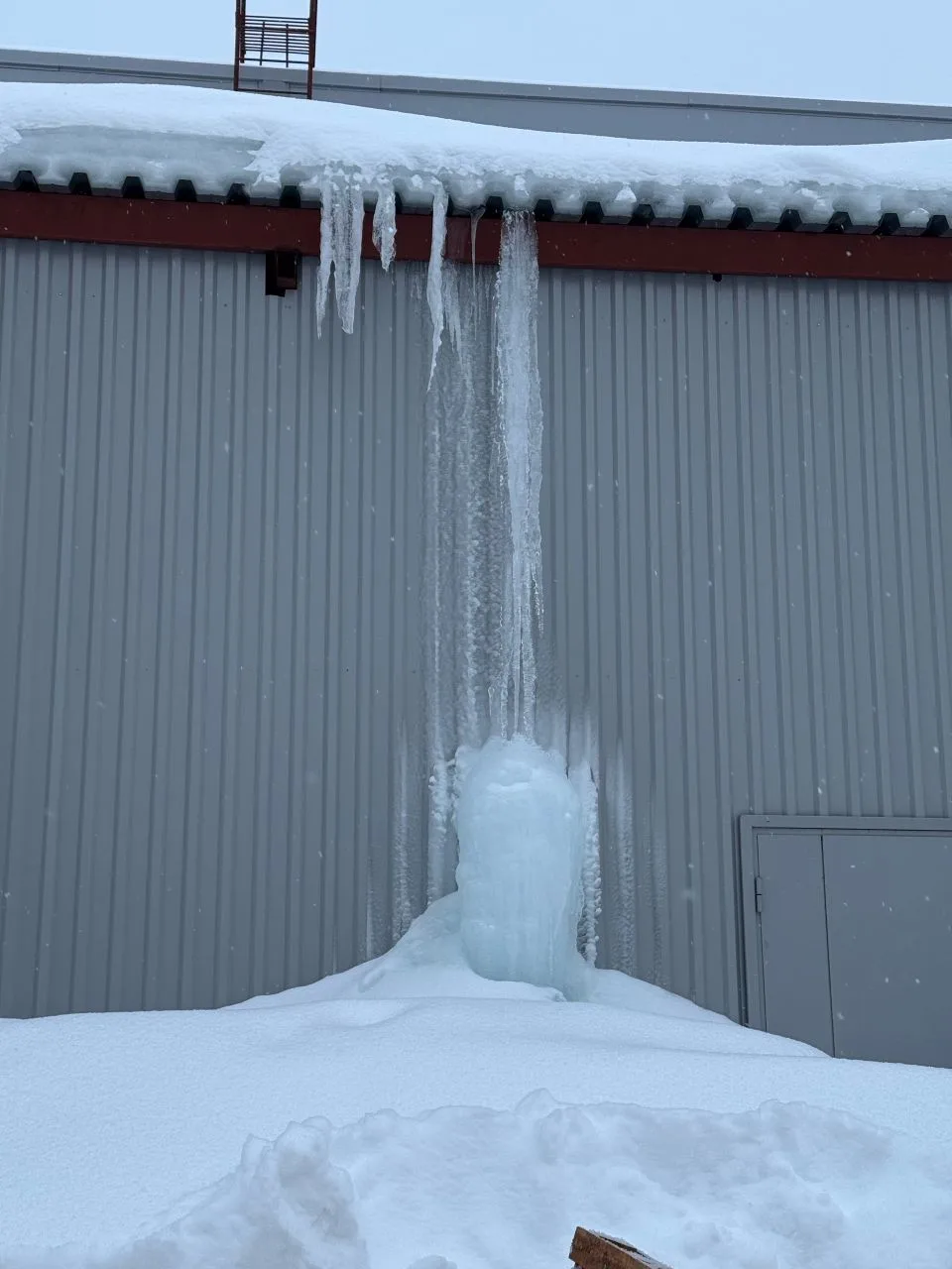 Крышу "Искры" чистят.